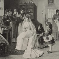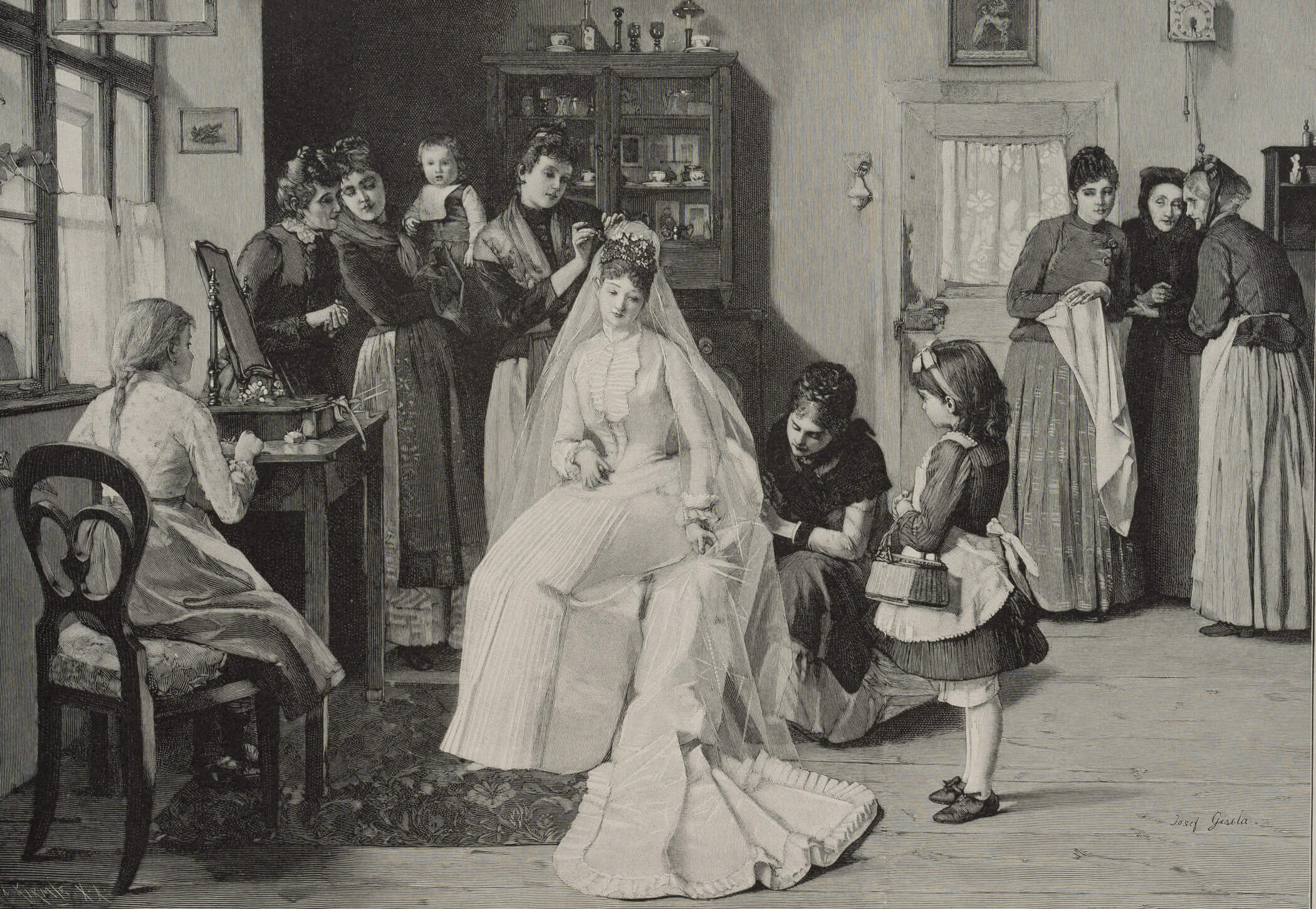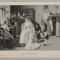 - Schlagworte: Braut, Hochzeit, Ankleide, Hochzeitsvorbereitungen, Fest, Trachten, Genre, Deutschland, Realismus, 1900-1924