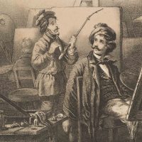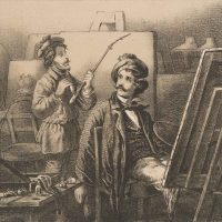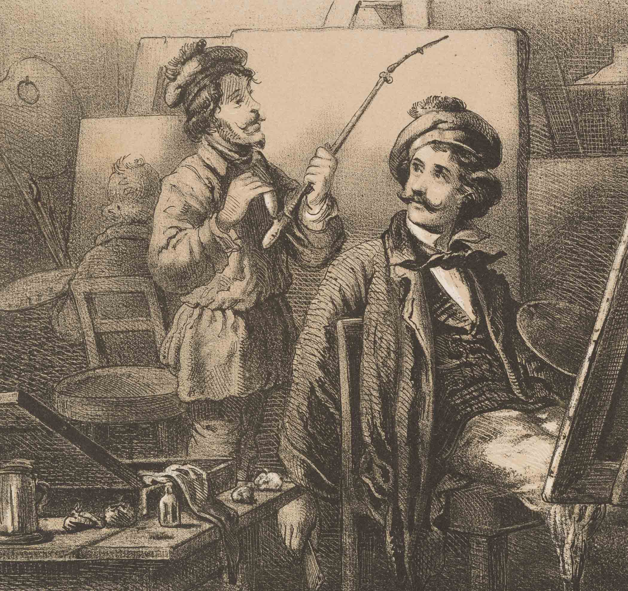 Unbekannt (19. Jahrhundert), Künstleralltag. Künstler im Atelier, 1850, Lithographie