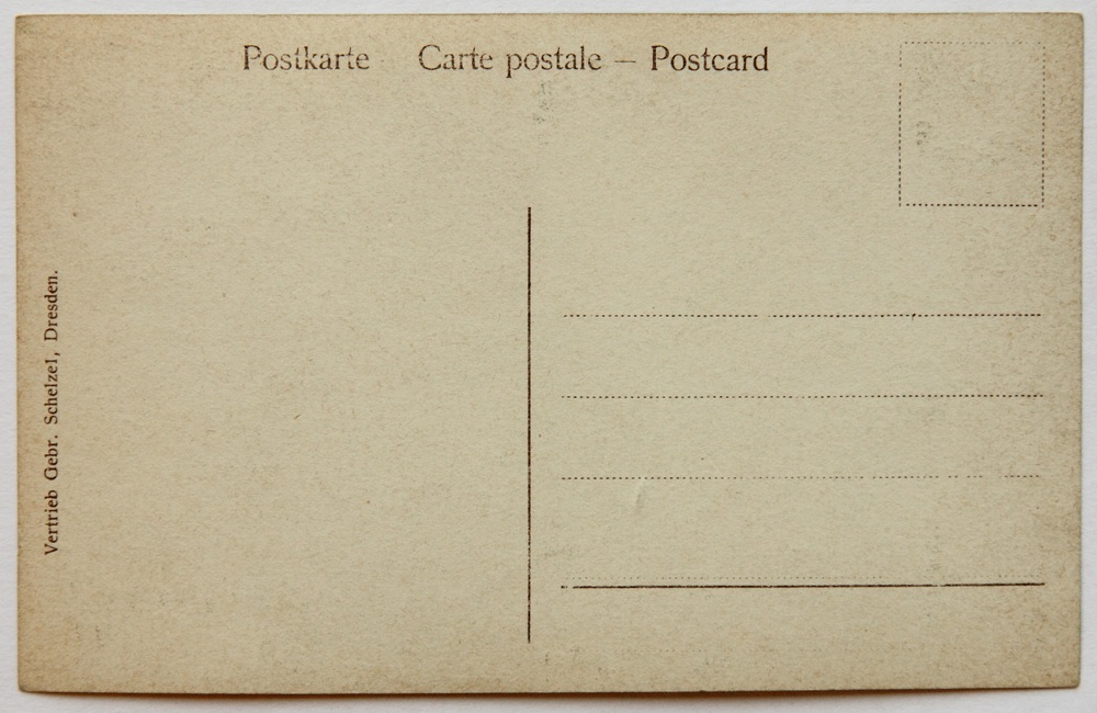 Photogravure on strong paper as postcard. Half-length portrait in three-quarter profile. The sitter wears her hair braided into a plait and a dress similar to a traditional costume. Minnie Nast is one of the great German opera singers of the early 20th century. After her musical studies at the Baden Conservatory in Karlsruhe, she made her singing debut in Aachen in 1897. She embarked on a successful career that took her to stages in Canada, the United States of America, Russia, the Netherlands and Great Britain, among others. Until 1919, the soprano sang regularly at the Semper Opera in Dresden. After that she taught singing in Dresden until 1945. Minnie Nast is known for her lively and light embodiments of soubrette roles, especially in Mozart operas. She gave an outstanding performance on 26 January 1911 when she sang the role of Sophie in the world premiere of Richard Strauss’ Der Rosenkavalier. Through surviving recordings, one can still experience her clear and enchanting voice today. At the lower edge of the picture is the name of the photo studio Hahn Nachfl. Dresden with a date of 1909. Below this is the number 403. This is a postcard from the publishing house of the Schelzel brothers in Dresden.