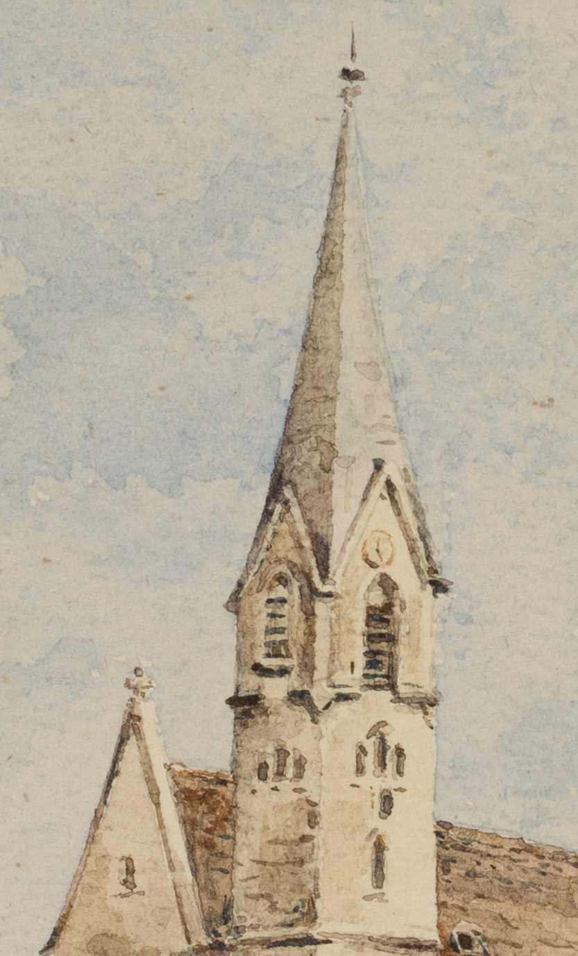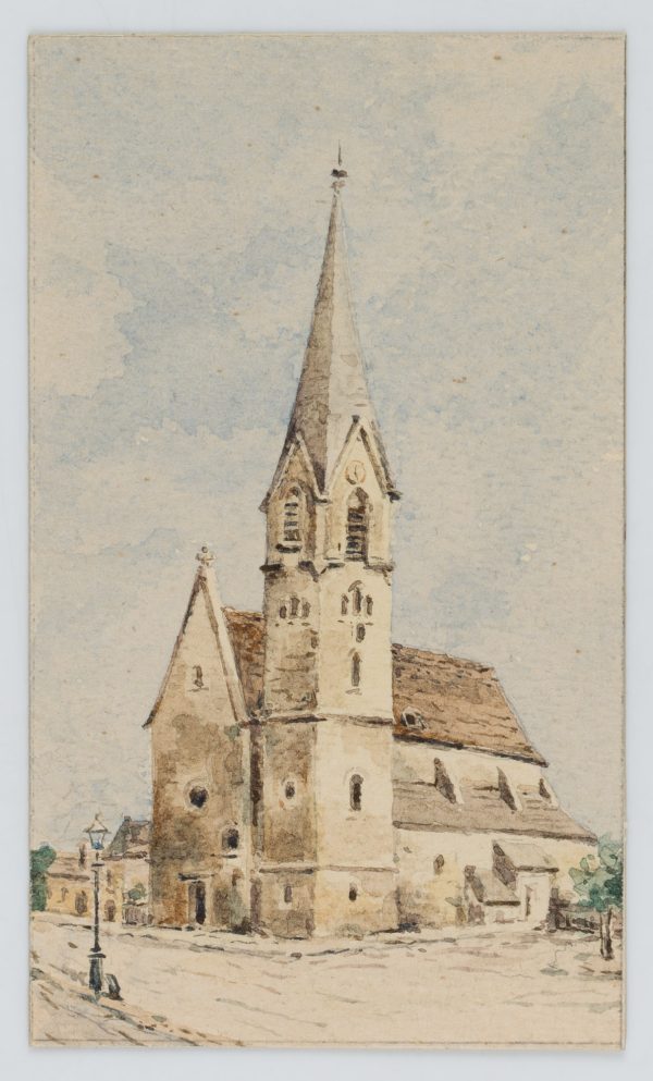 Veit Froer (1828 Nuremberg – 1900 ), Village church with freestanding bell tower, c. 1880, Watercolor
