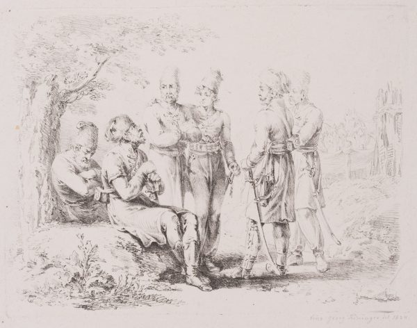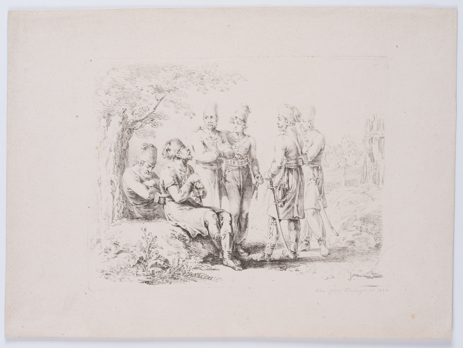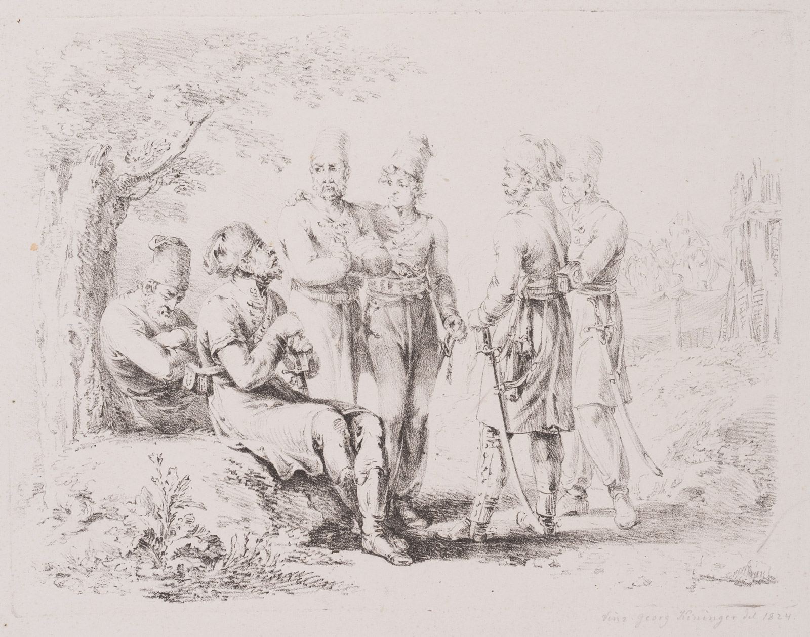 Vincenz Georg Kininger (1767 Regensburg – 1851 Vienna), Ottoman soldiers or Mamluks, 1824, Crayon manner