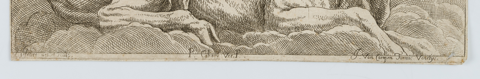 - Inscription: Signed below left: “Lefebvre del. et sculp.”, next to it: “P. Caliari Ver. P” and to the right: “J. van Campen Formis Venetys.