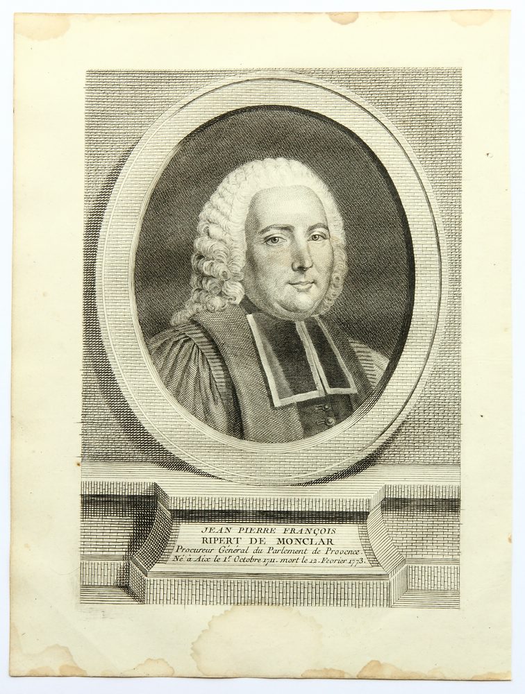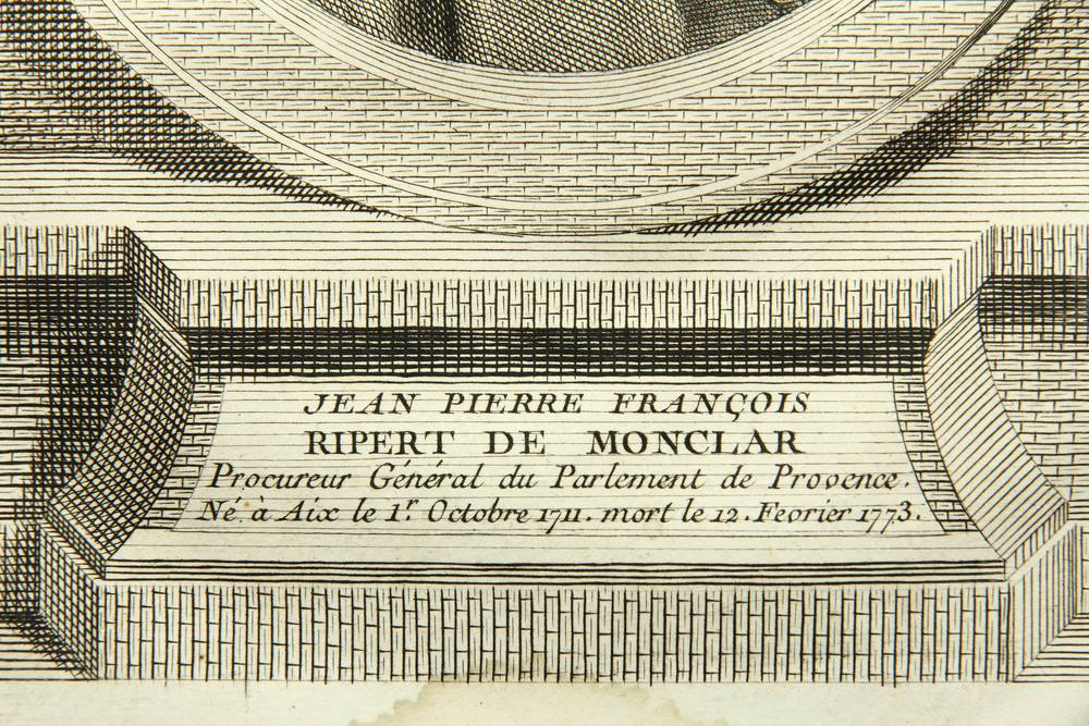 Vincenzo Vangelisti (um 1738 Florenz – 1798 Paris), Porträt des französischen Juristen und Gerichtsmagistraten Jean-Pierre-François Ripert de Monclar (1711 Aix-en-Provence – 1773 Saint-Saturnin-lès-Apt Vaucluse), ab 1732 Procureur géneral au Parlement d’Aix, um 1775, Kupferstich