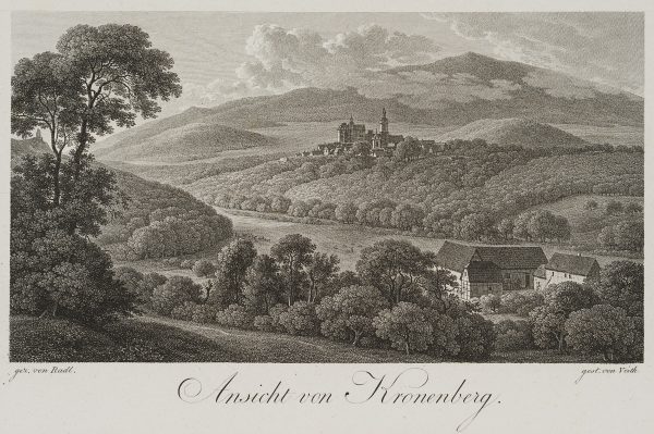 - Inscription: At the lower part signed in the printing plate: “gez. von Radl | gest. von Veith”. At the lower part inscribed in the printing plate: “Ansicht von Kronenberg”.
