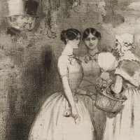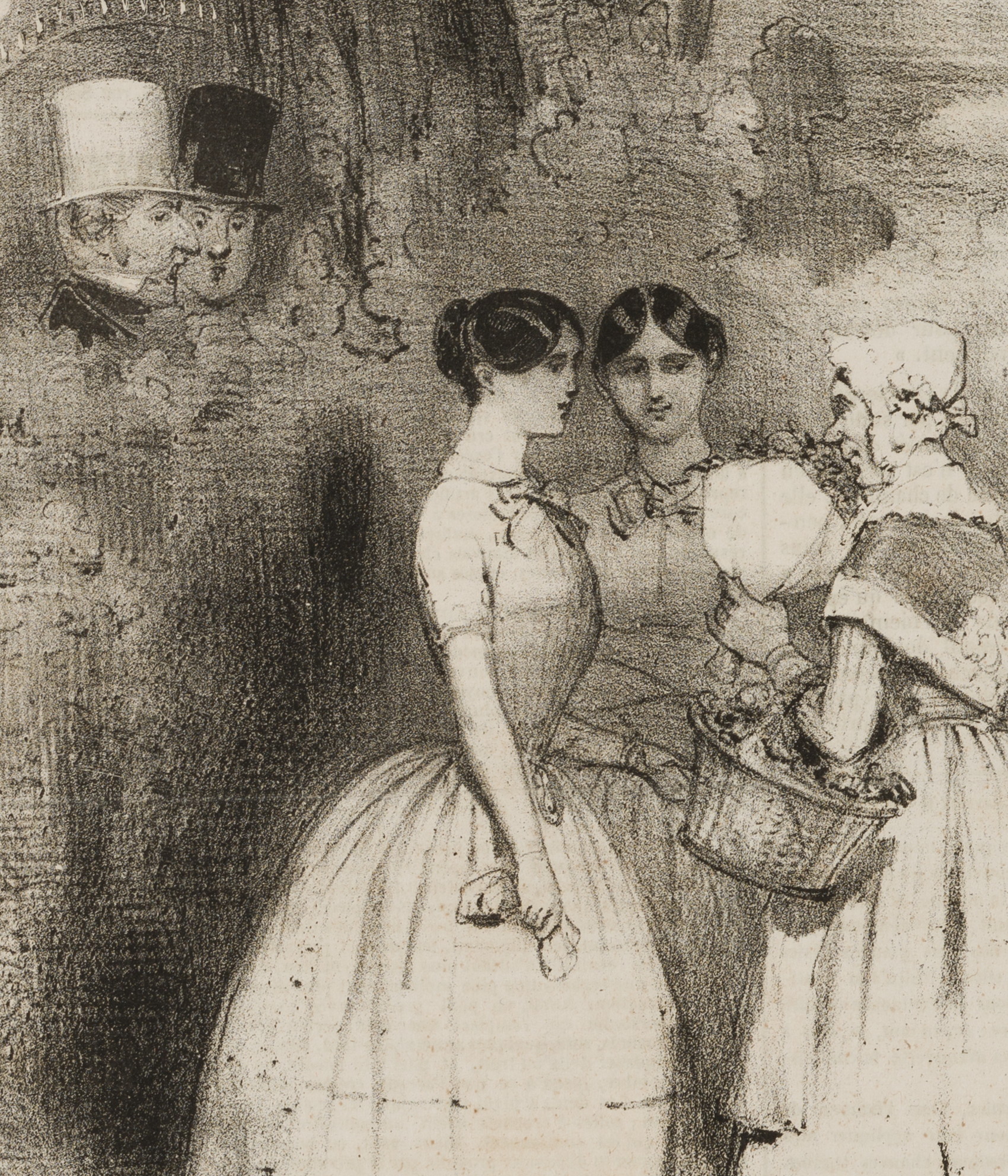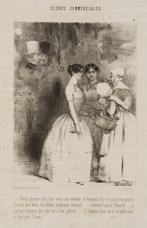 Vernier (19th century), Caricature Ladies with flower seller, , Lithography