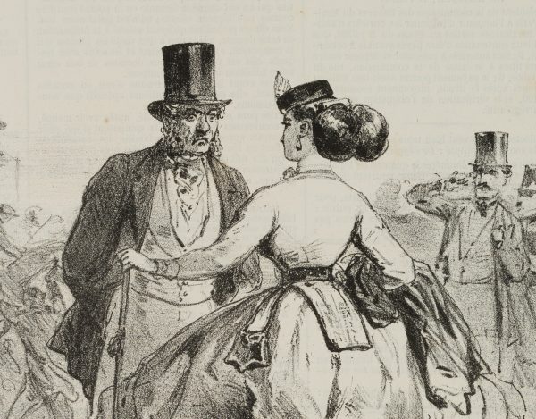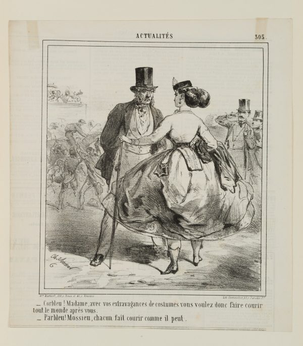 Horse Racing, Lady, Gentleman, Fashion, 19th century, Modern, Caricature, France, - Size: 29,0 cm x 24,5 cm (11,4 x 9,6 in)