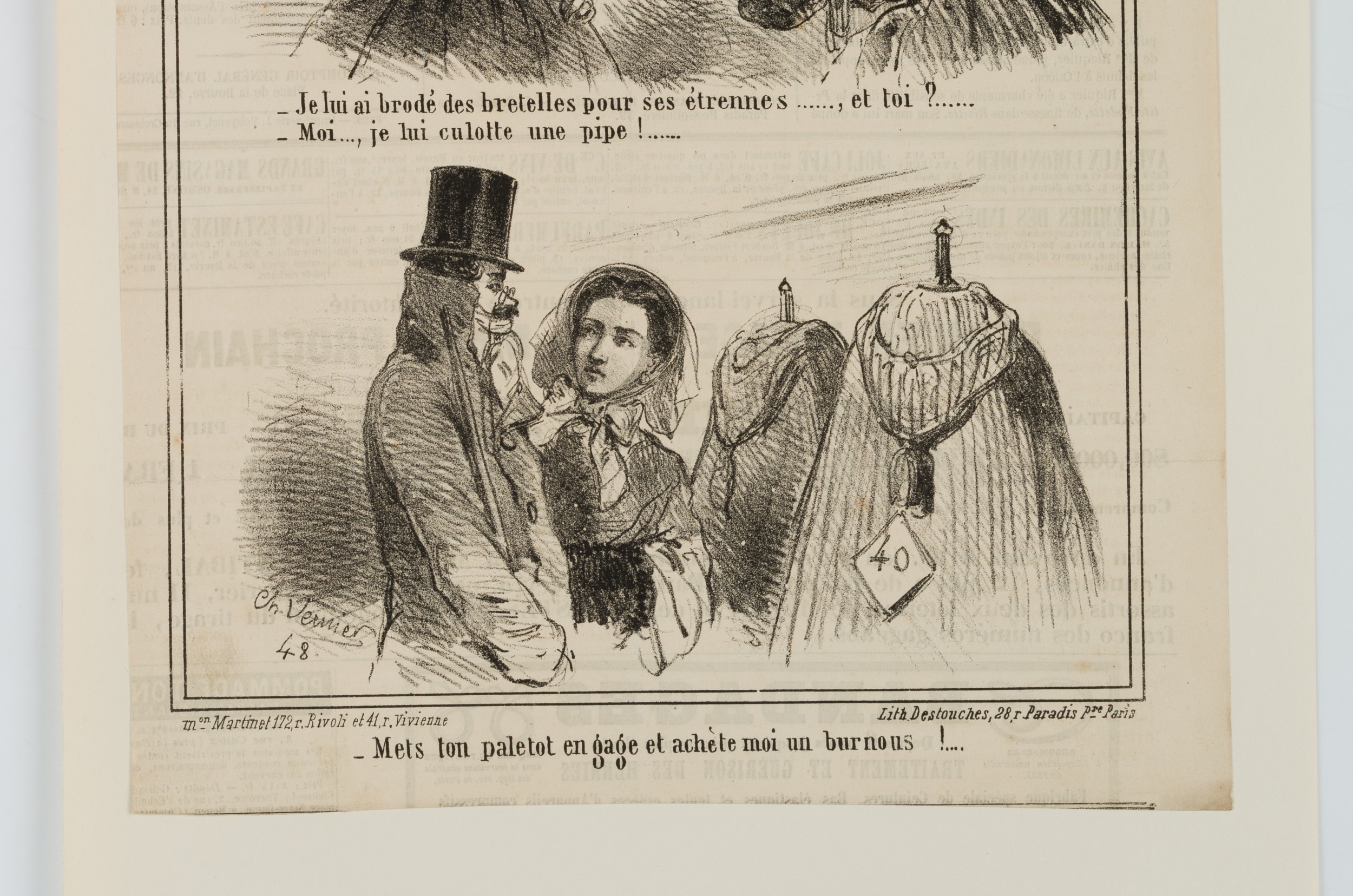 Vernier (19th century), Two cartoons Gifts – Bournouskauf, , Lithography