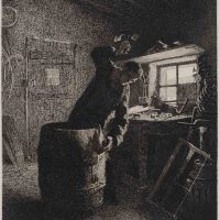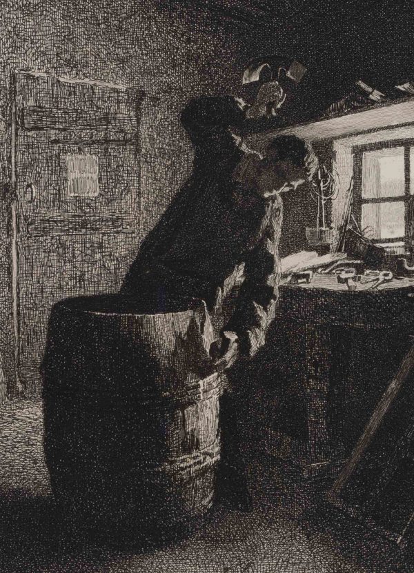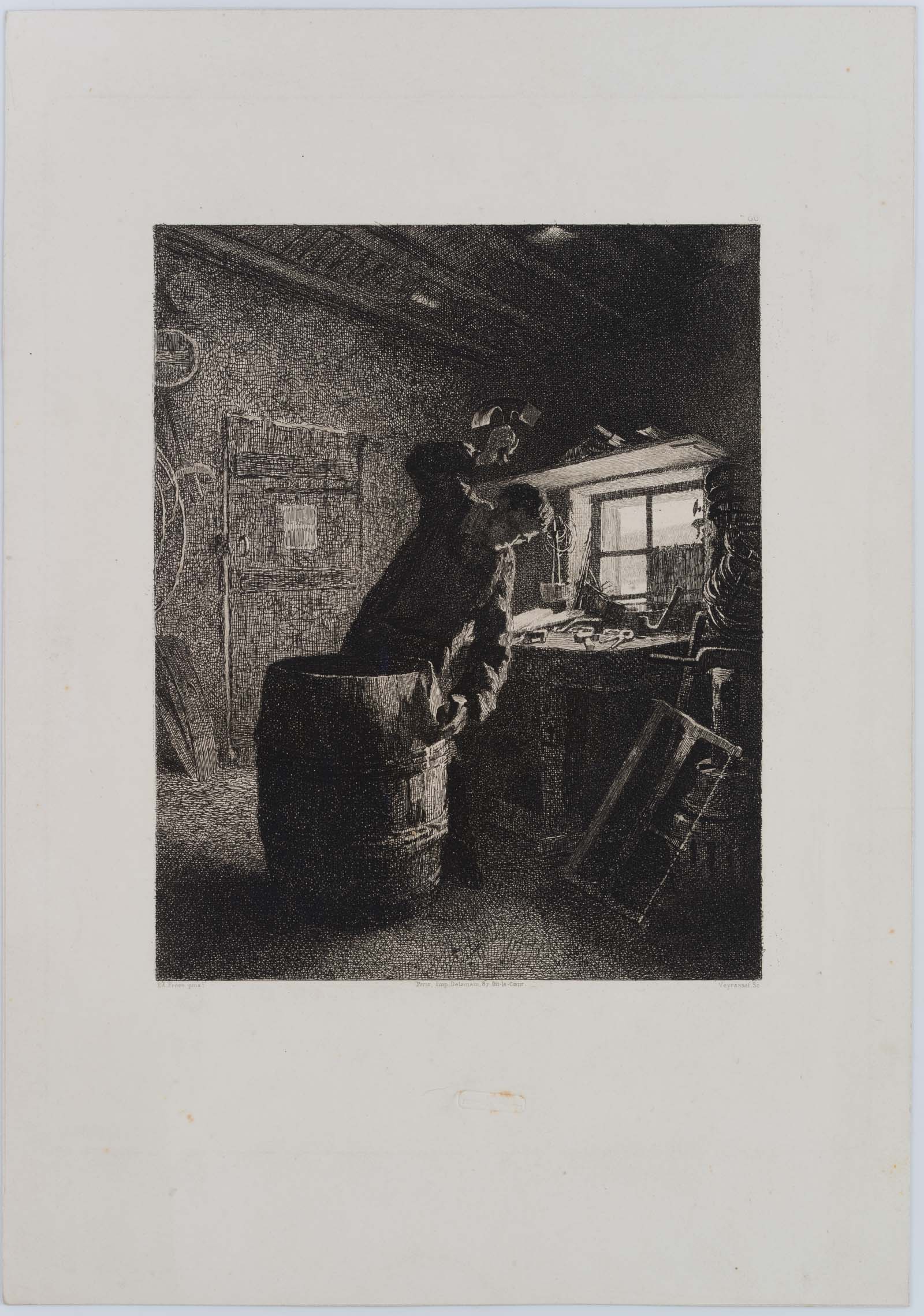 Jules Jacque Veyrassat (1828 Paris – 1893 ibid.) after Charles Edouard Frère (1837 – 1894 ), Fassbinder at work, c. 1860, Etching