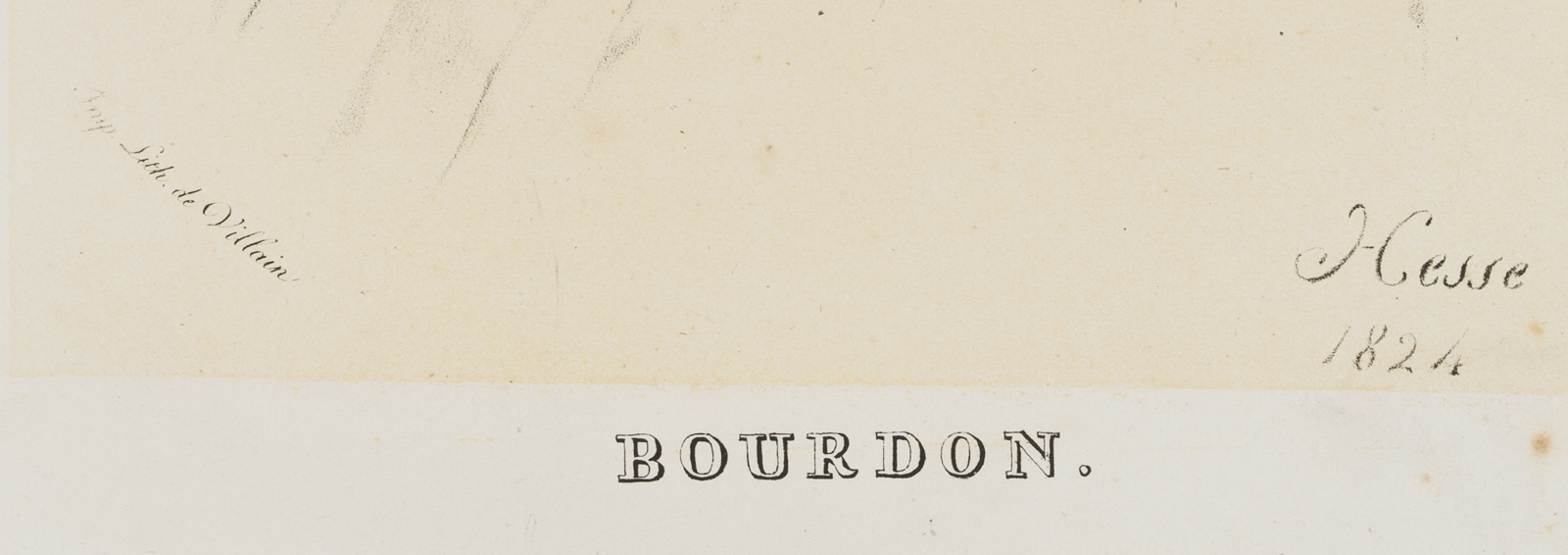 - Bezeichnung: Unten im Druck bezeichnet: “Imp. Lith. de Villain”,”Hesse 1824″, “Bourdon”.