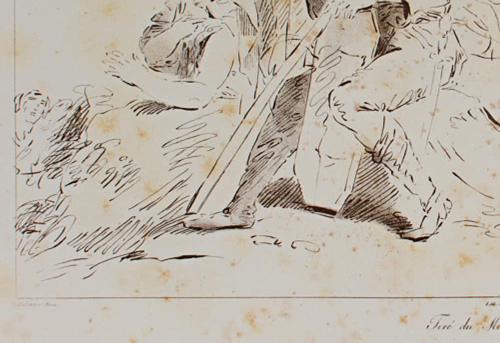 • Description: Two milieu studies in the countryside. Lithographs by Villain. From the series: Pictures of the Italian School (ECOLES D’ITALIE}. Inscribed under the motifs: Salvator Rosa. Lith de Villain . C”. def