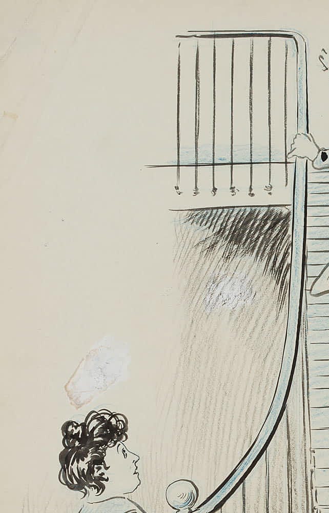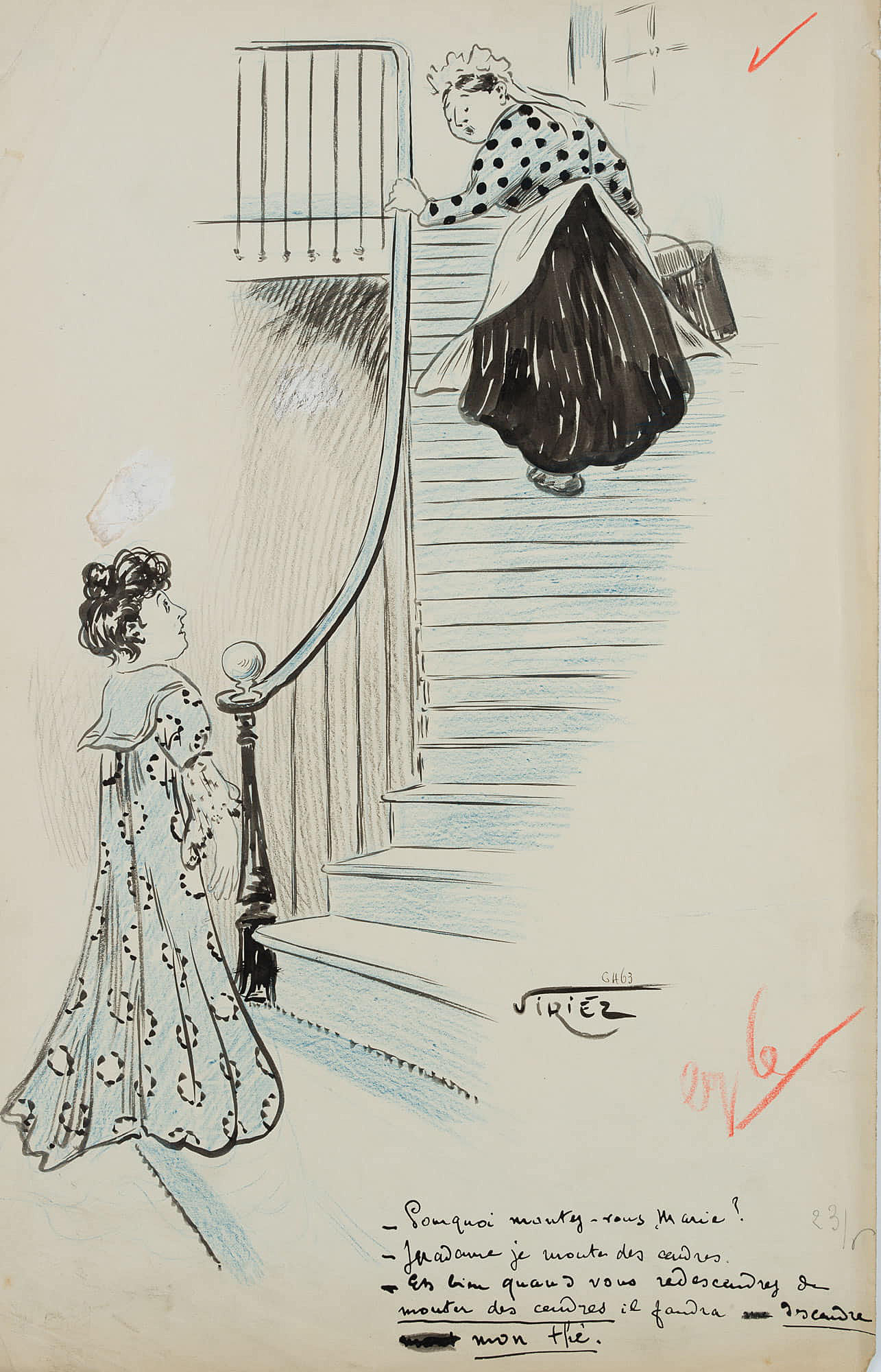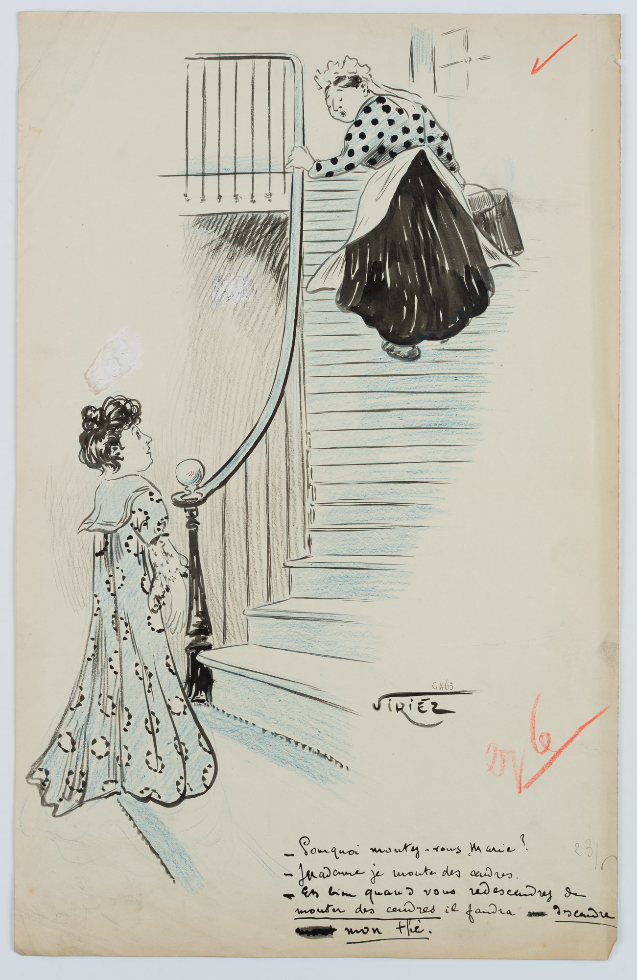 Viriez (19th century), Cartoon The stairs, 19th century, Indian ink