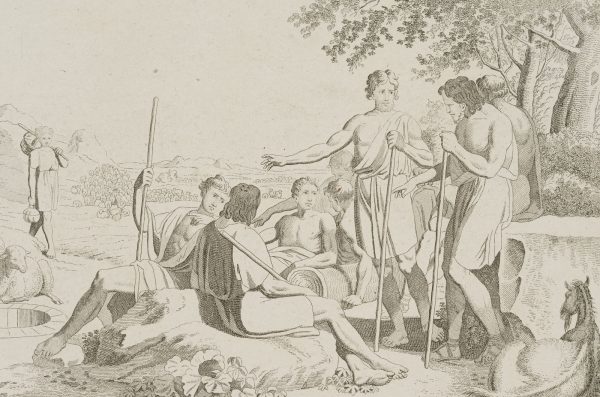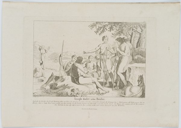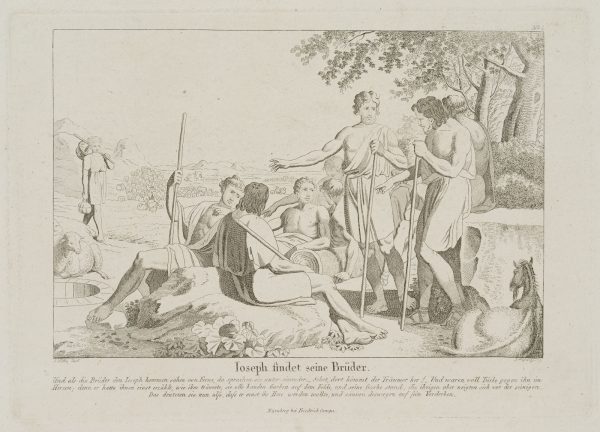 - Description: Signed “J.Voltz del. / J. Nussbiegel sc.” below the depiction, titled and inscribed “And when the brothers saw Joseph coming from afar, they said among themselves, “Behold, there comes the Deäumer her!” And were full of spite against him in their hearts”. “Nuremberg by Friedrich Campe”