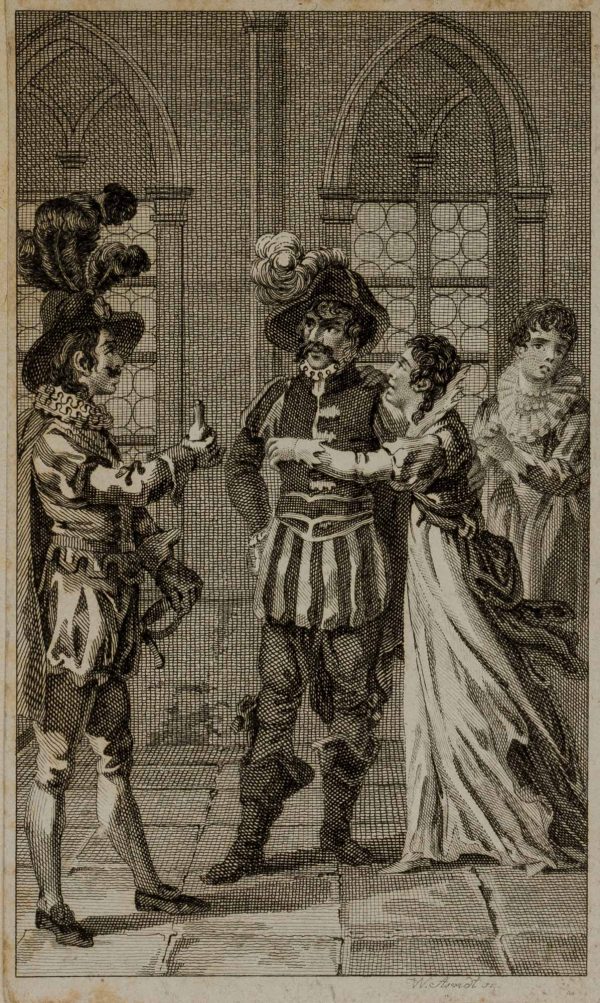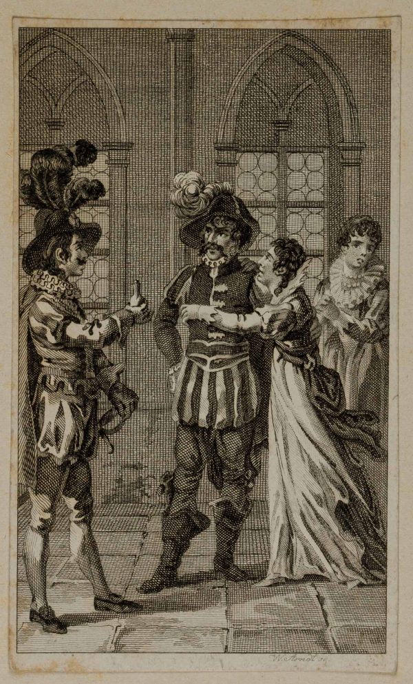 W. ARNDT (1750-1813), Figurenszene am Hofe, Romantik Trachten
