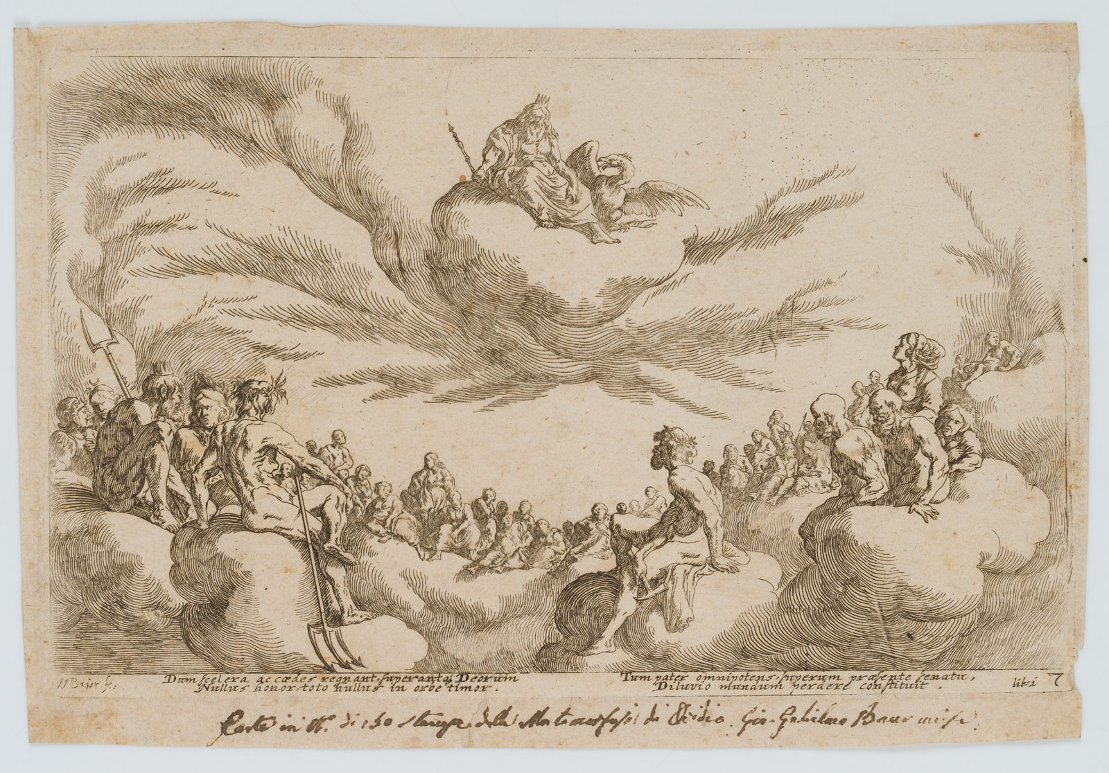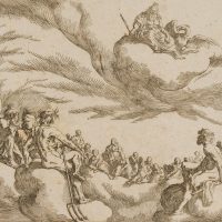 W. Bayer (18th century), Meeting of the gods in the clouds of Olympus with Zeus, Poseidon, Hera and others, 18th century, Etching