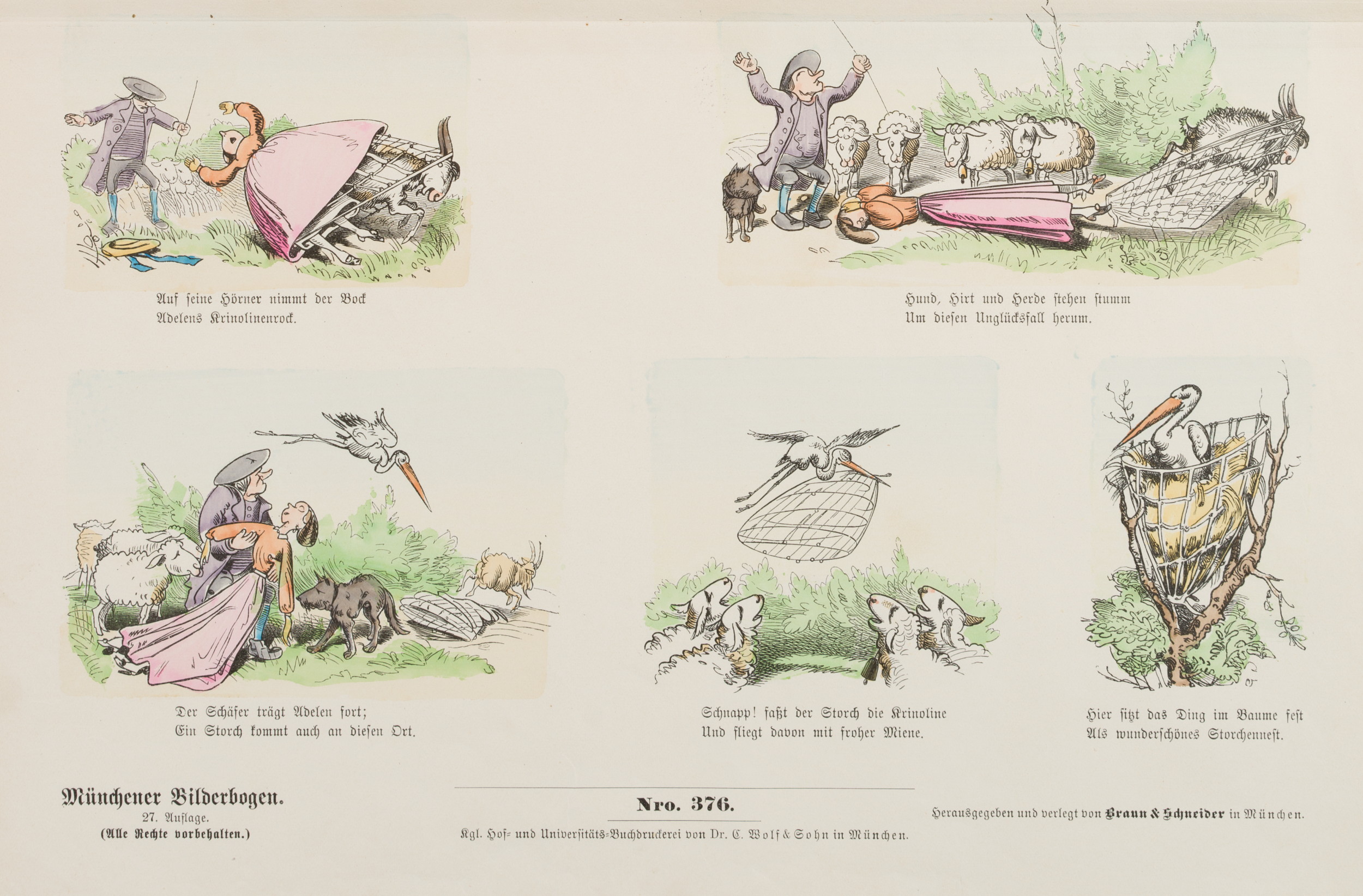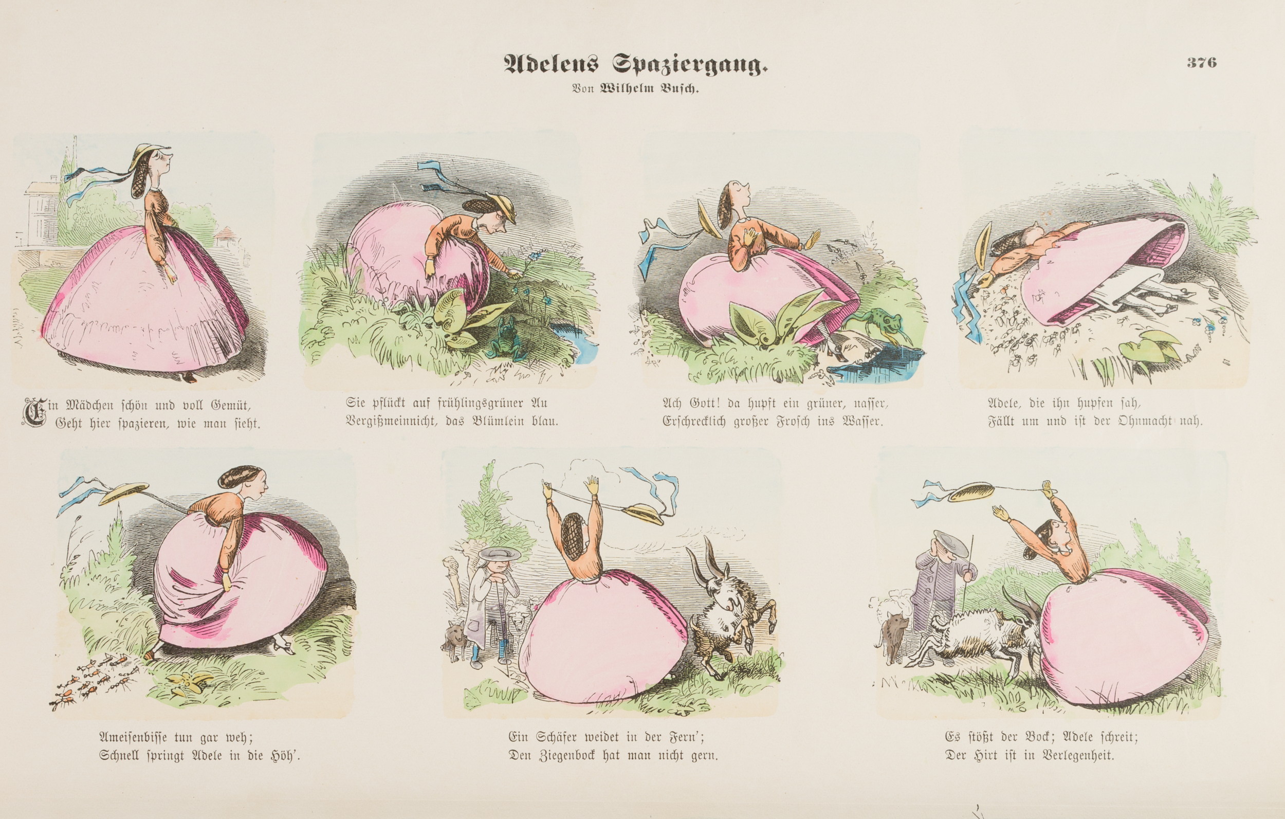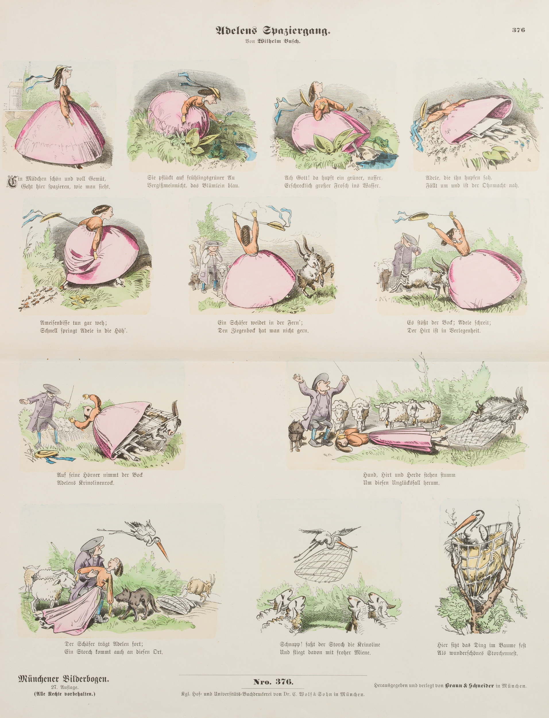 Wilhelm Busch (1832 Wiedensahl – 1908 Mechtshausen), Adelens Spaziergang Humorous picture story, , Colour lithography