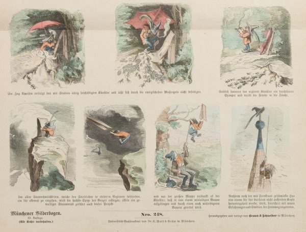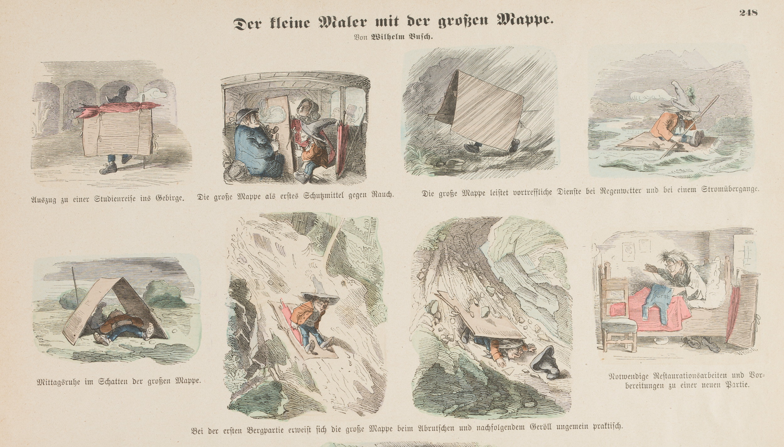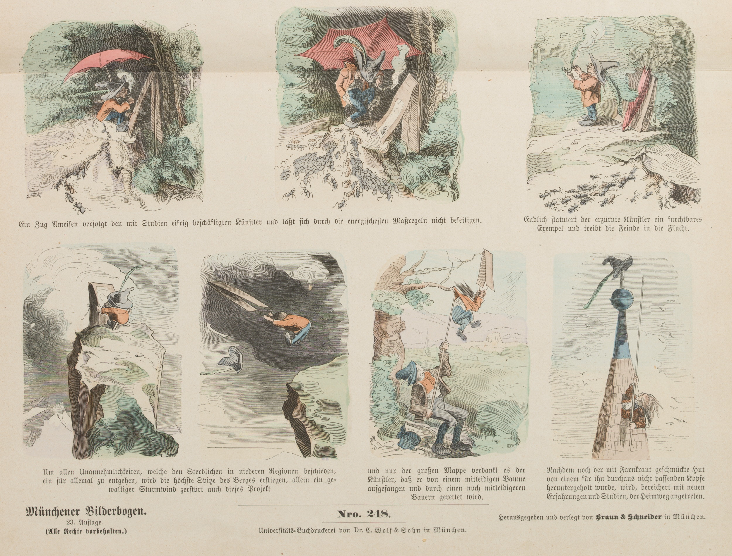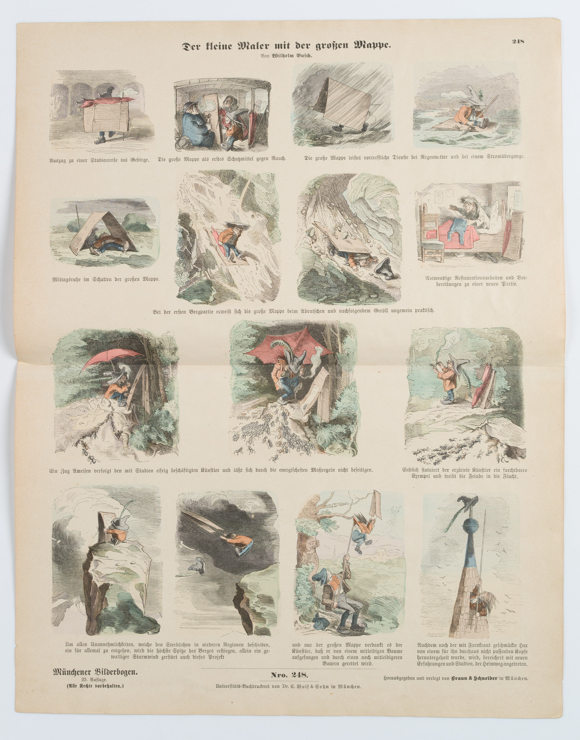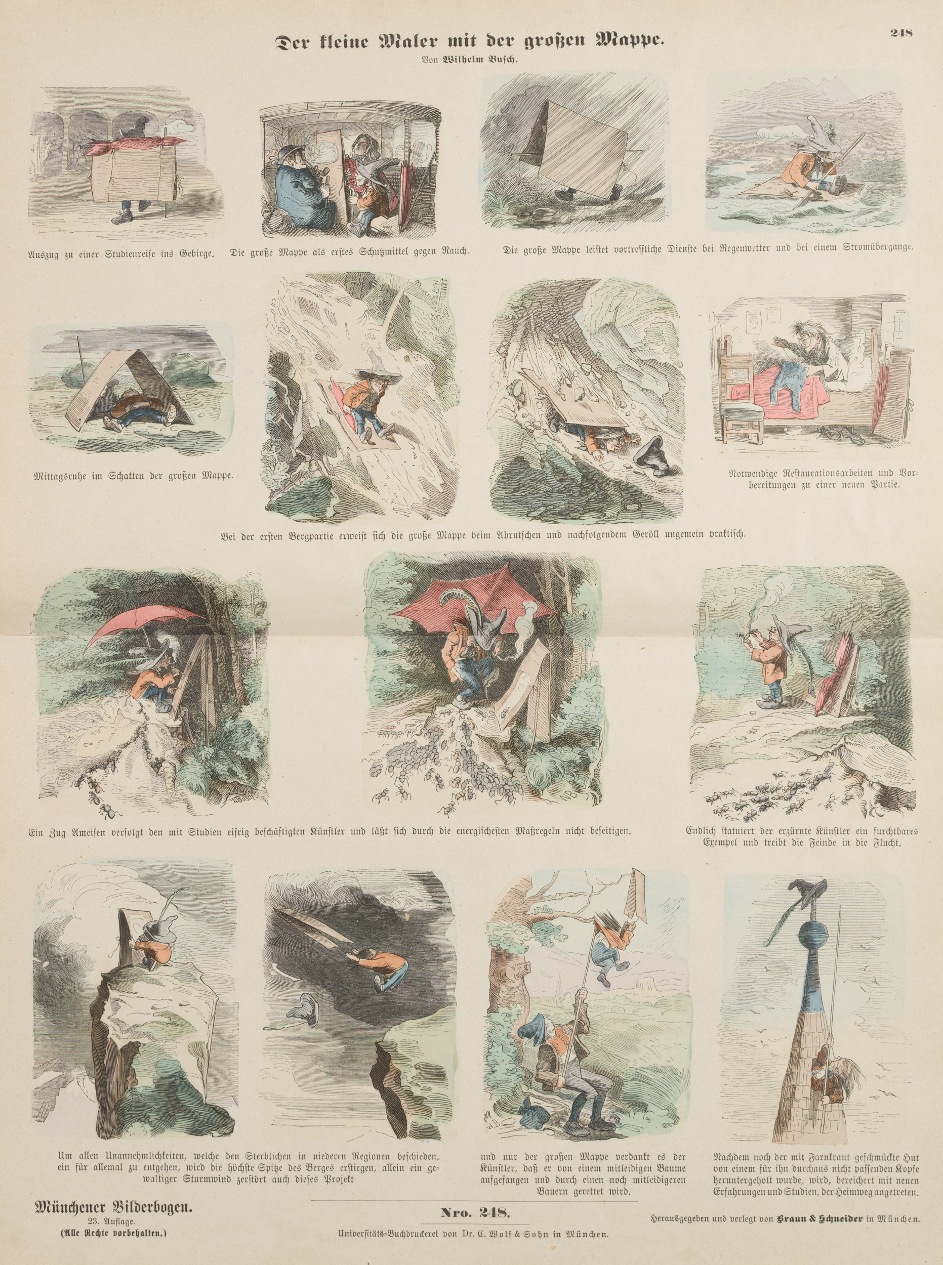 Wilhelm Busch (1832 Wiedensahl – 1908 Mechtshausen), The little painter with the big portfolio Humorous picture story, , Colour lithography