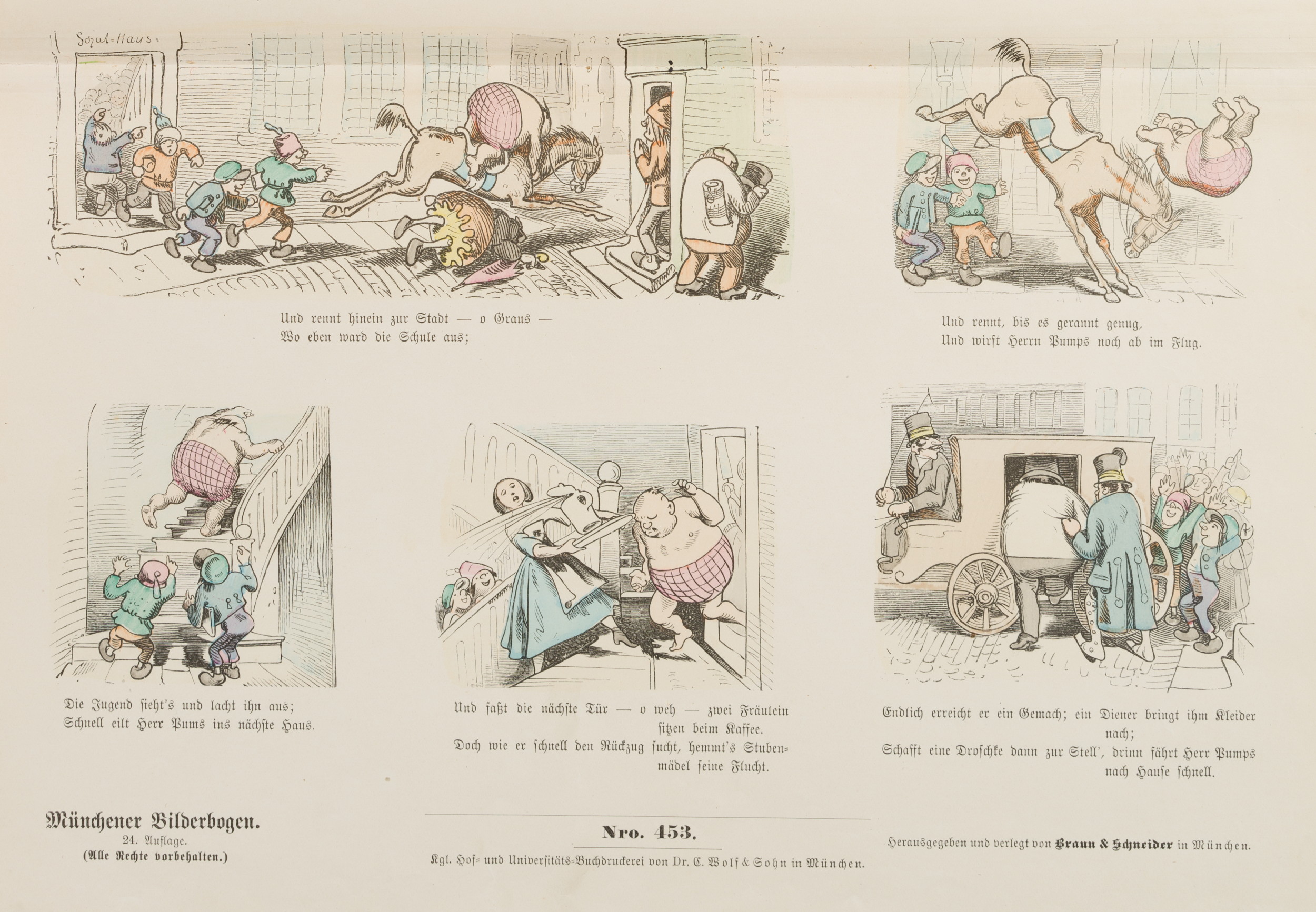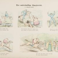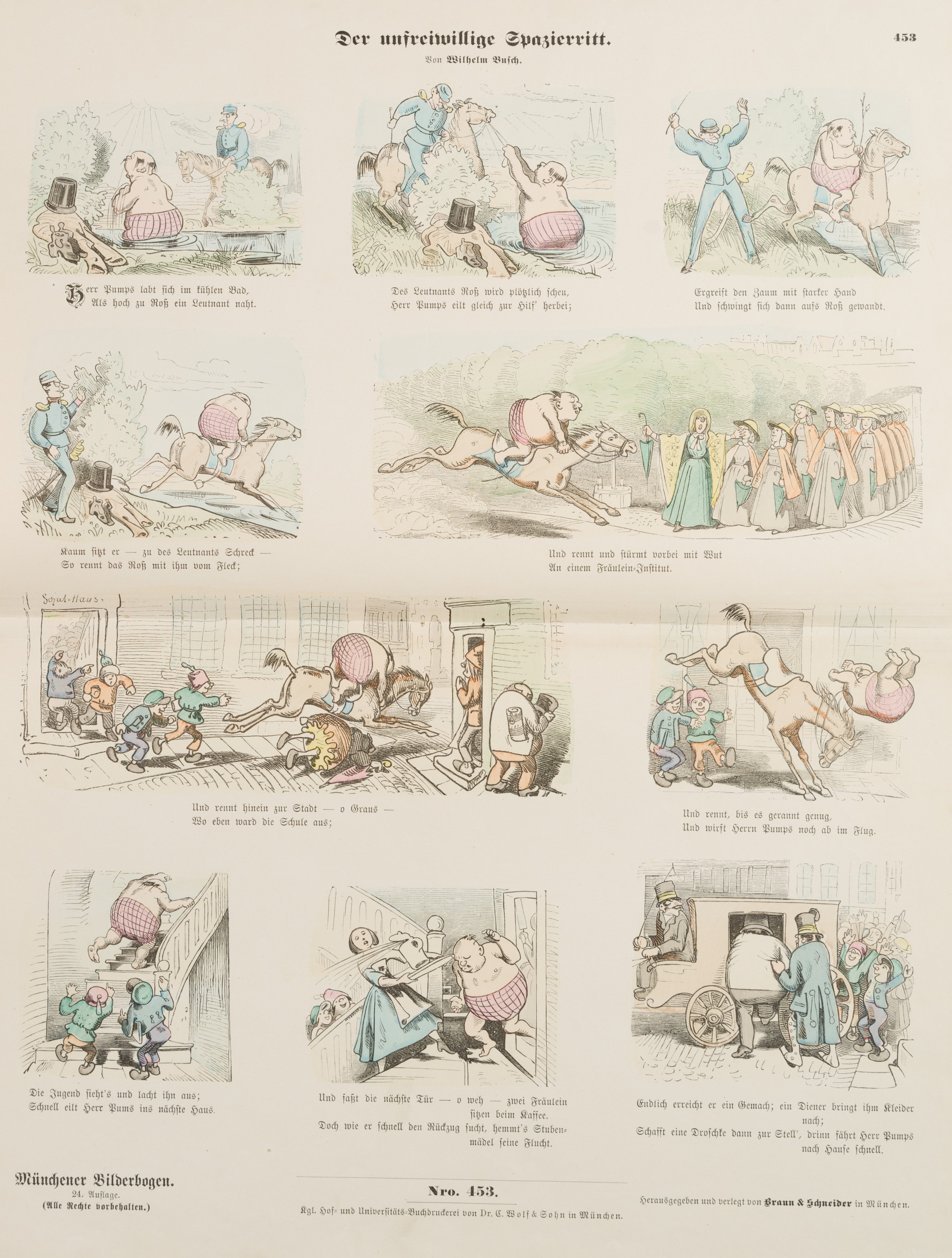 Wilhelm Busch (1832 Wiedensahl – 1908 Mechtshausen), The Involuntary Ride Humorous picture story, , Colour lithography
