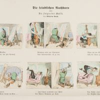 Wilhelm Busch (1832 Wiedensahl – 1908 Mechtshausen), ‘The Hostile Neighbours’ Humorous picture story, , Colour lithography