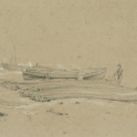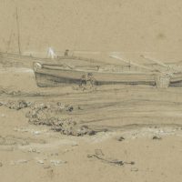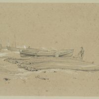 William Callow (1812 London – 1908 Buckinghamshire) attributed, Coast with stranded boats and fishermen, 19th century, Pencil