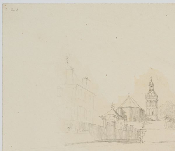 William Barnard Clarke (1806 Cheshunt, Hertfordshire – 1865 Freiburg im Breisgau), Die Basilika Saint-Andoche in Saulieu (Côte-d’Or), 1838, Pencil