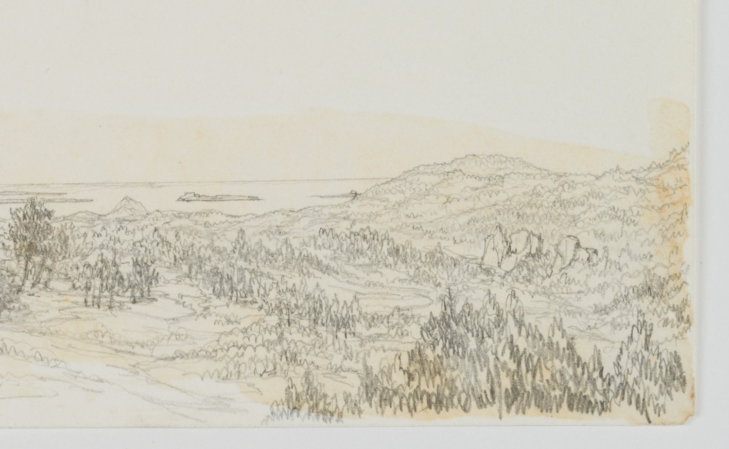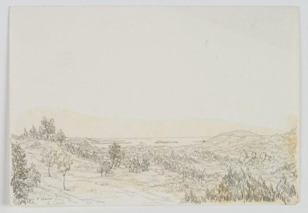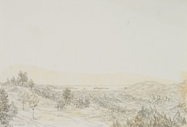 William Barnard Clarke (1806 Cheshunt, Hertfordshire – 1865 Freiburg im Breisgau), Coastal Landscape with View of the Îles de Lérins near Cannes, c. 1830, Pencil