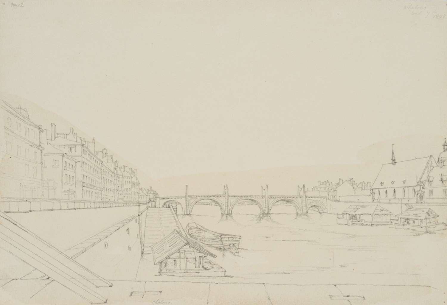 William Barnard Clarke (1806 Cheshunt, Hertfordshire – 1865 Freiburg im Breisgau), Pont Saint Laurent in Chalon-sur-Saône, 1838, Pencil