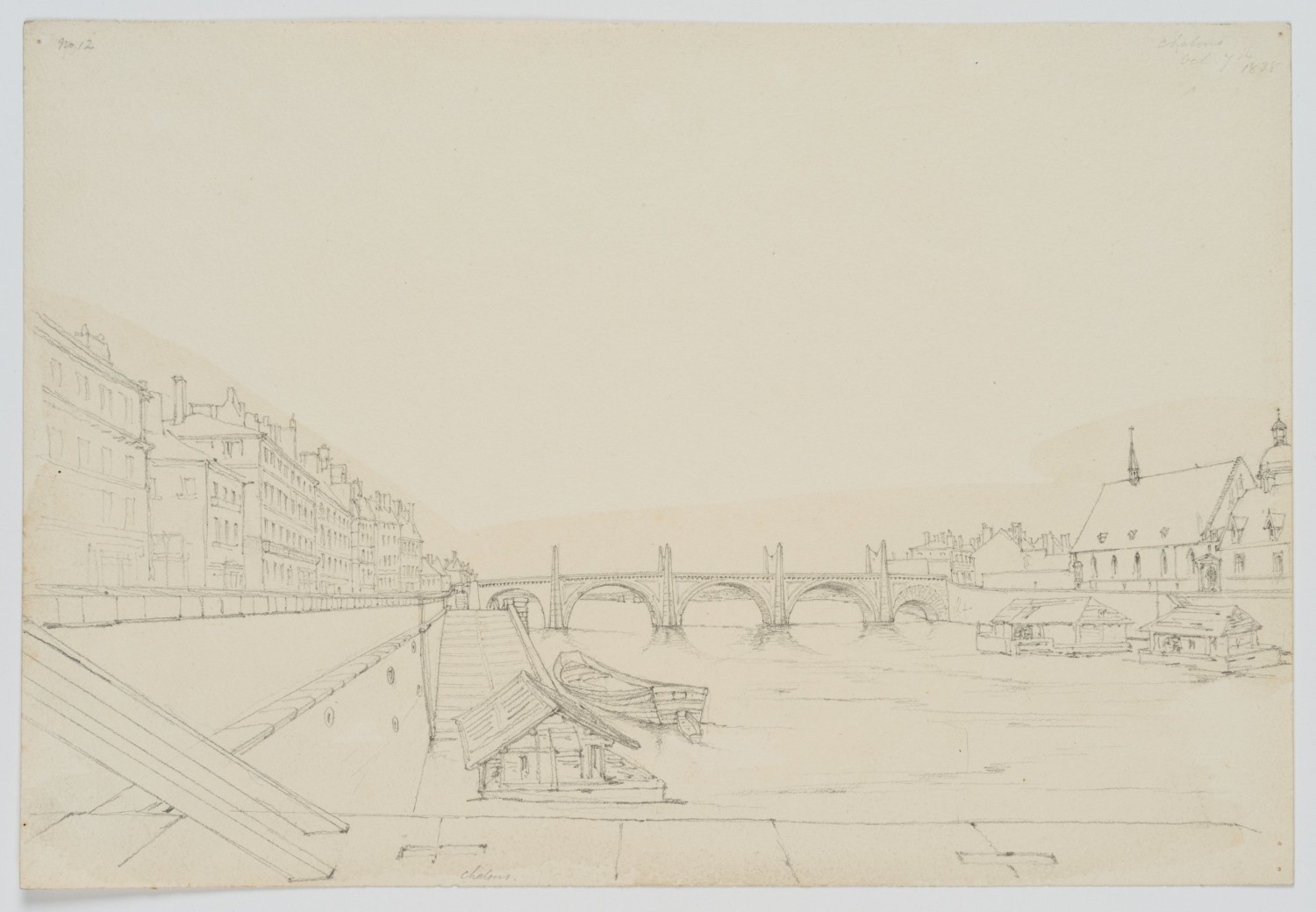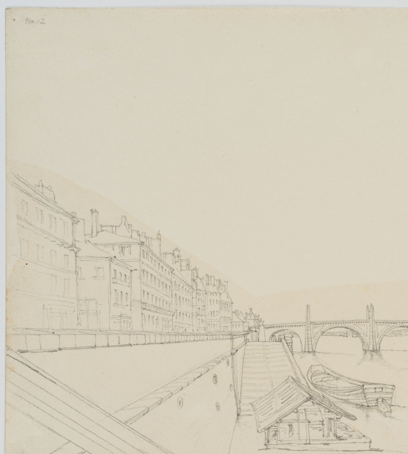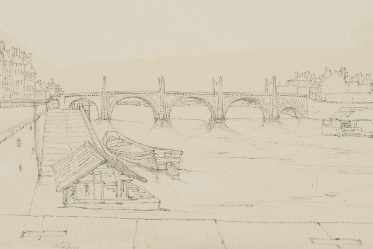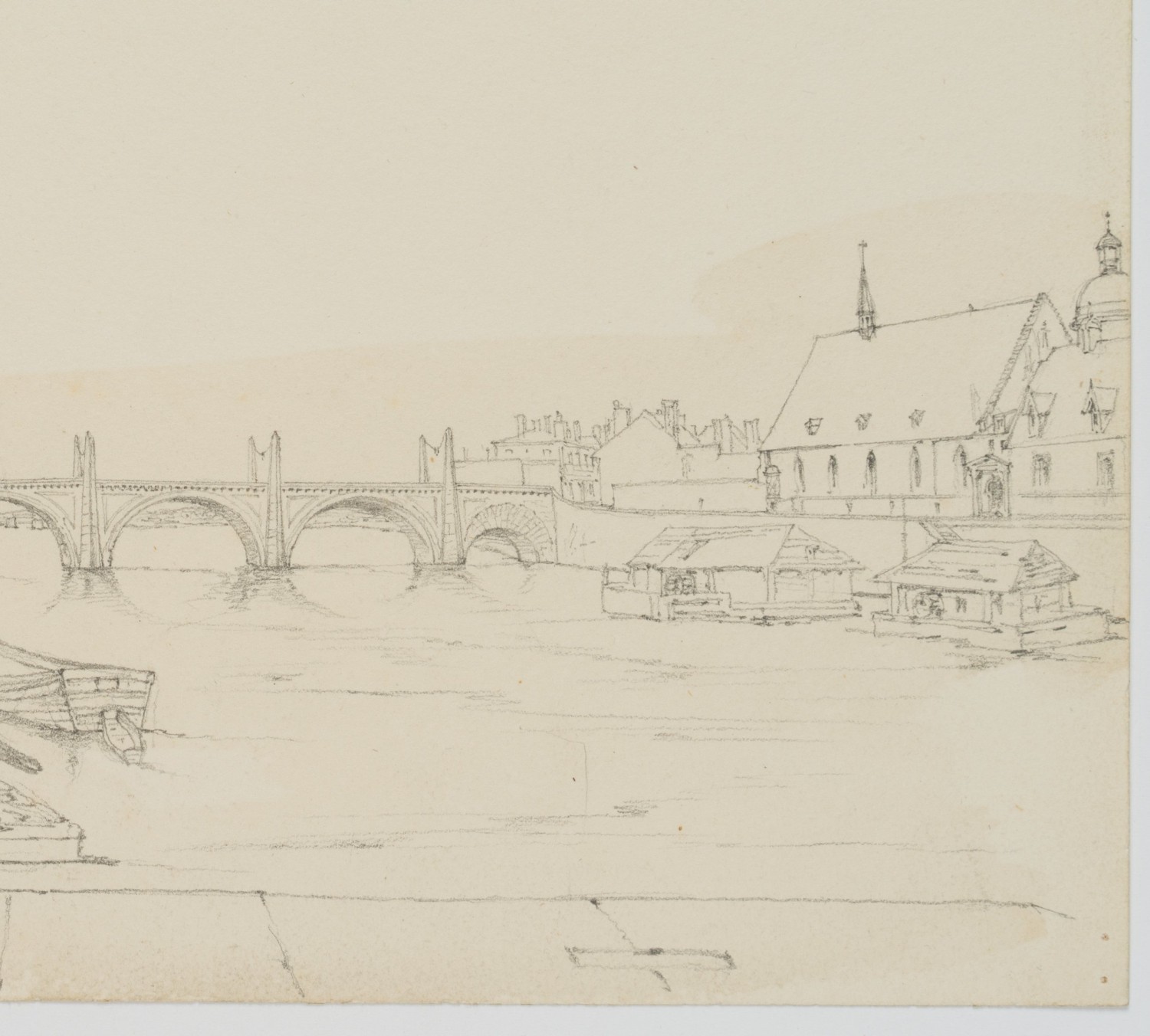- Keywords: Drawing, Pencil, France, England, Great Britain, River, Bridge, Boat, Architecture, Bank, 19th century, Romanticism, Architecture, France,