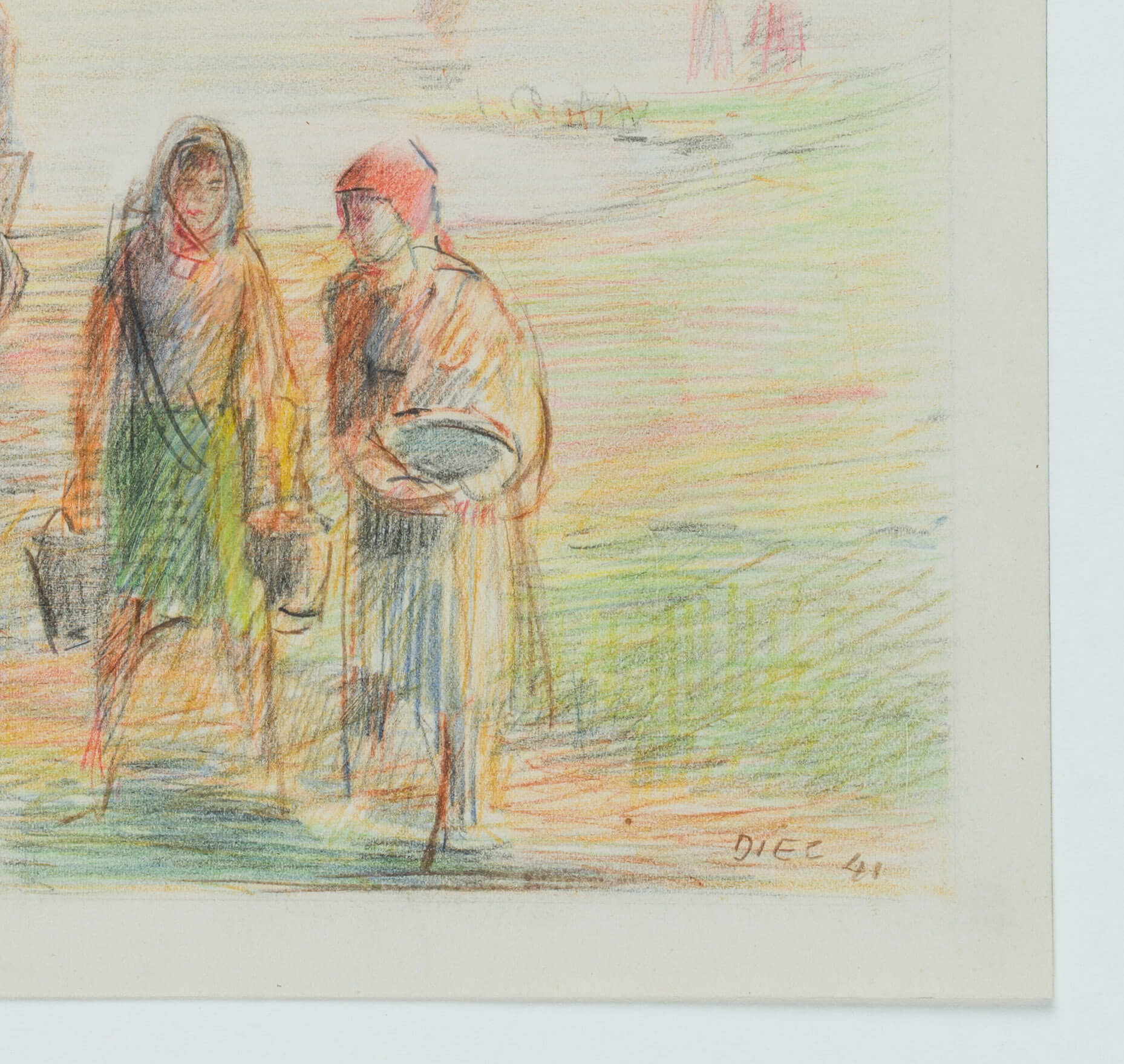 - Technik: Buntstift auf Papier, montiert auf Papier