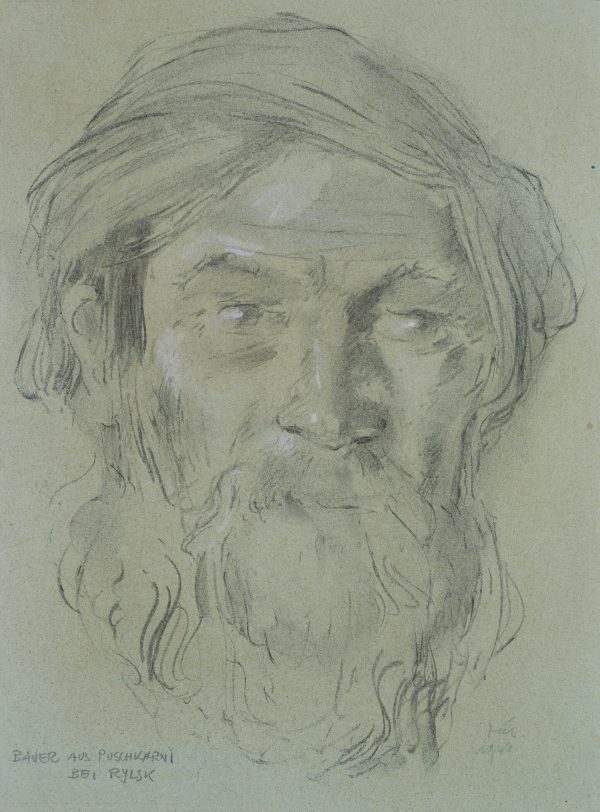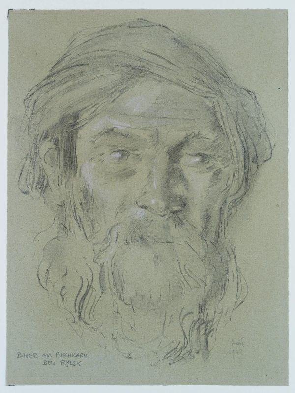 - Schlagworte: Kopfstudie, Kopfstück, Portraitstudie, Männerportrait, Mann, russischer Mann, Bauer, Russe, Russland, Bart, Rylsk, Oblast Kursk, Russland, zweiter Weltkrieg, Russlandfeldzug, Deutsch-Sowjetische Krieg, Ostfeldzug, Porträt, Trachten, Russische Föderation, Realismus, 1925-1949
