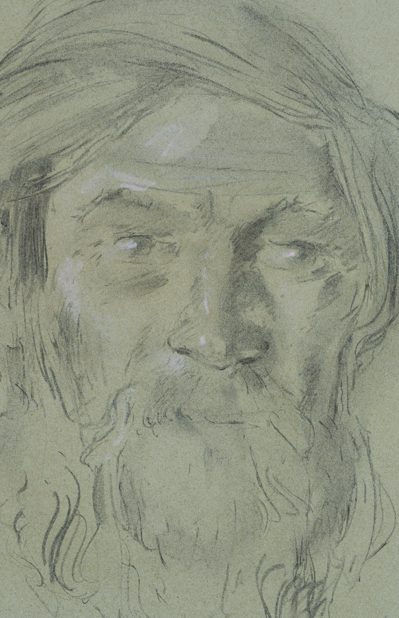 Werner Diez (1906 Kempen – 1979 Schorndorf), Frontal head study of a bearded man, peasant from Pushkarni near Rylsk, Kursk Oblast, Russia, 1943, Charcoal
