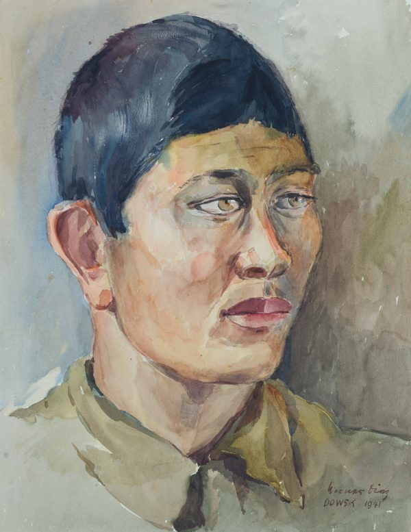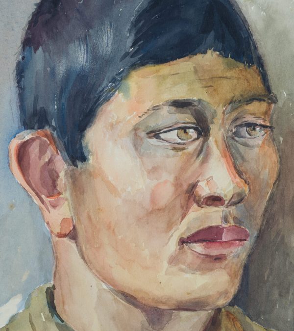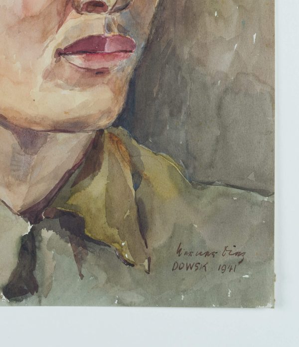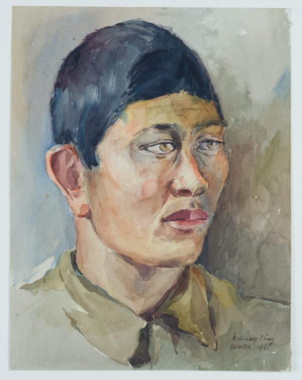 Werner Diez (1906 Kempen – 1979 Schorndorf), Werner DIEZ (1906 Kempen – 1979 Schorndorf), Portrait of a Young Asian Soldier, Prisoner of War from the Dowsk Camp, 1941, Watercolor