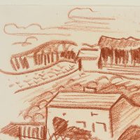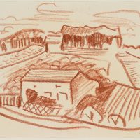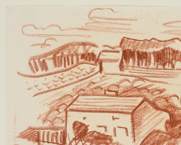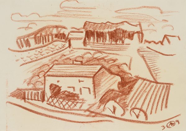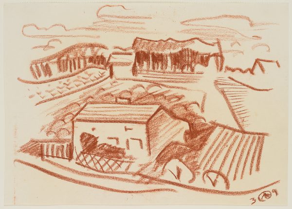 Werner Drewes (1899 Canig (Nieder-Lausitz) – 1985 Reston (Virginia)), Rurale Landschaft mit Häusern und Feldern, 1939, Kreide