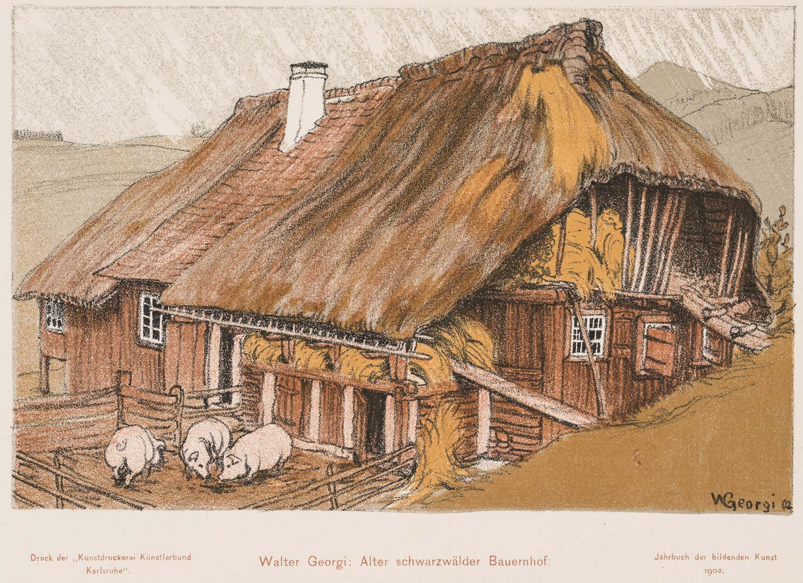 Walter Georgi (1871 Leipzig – 1924 Holzhausen am Ammersee), Alter schwarzwälder Bauernhof, aus Jahrbuch der bildenden Kunst, 1902, 1902, Reproduktion