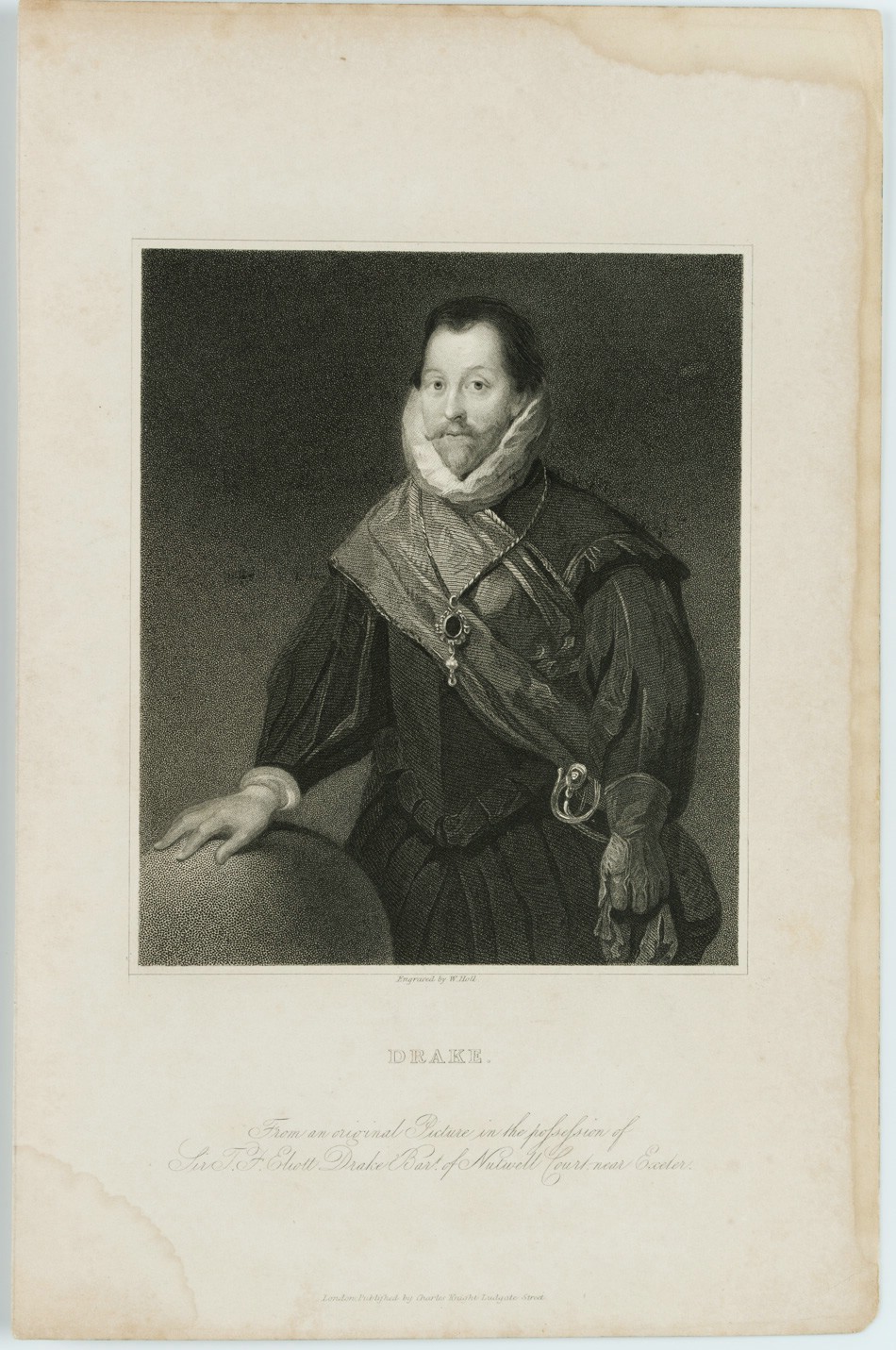 - Inscription: Unten signiert und betitelt: “Drake. From an original Picture in the possession of Sir T. J. Eliott Drake Bart. of Nutwell Court near Exeter.”