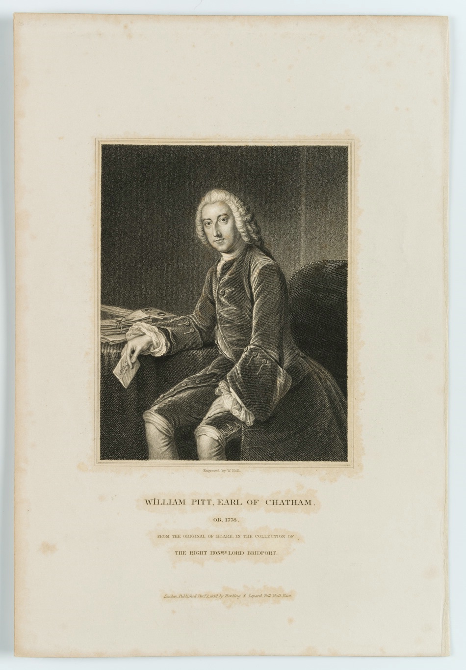 - Bezeichnung: Unten signiert und betitelt: “William Pitt, Earl von Chatham. From the Original of Hoare. In the collection of The Right Honble. Lord Bridport.”