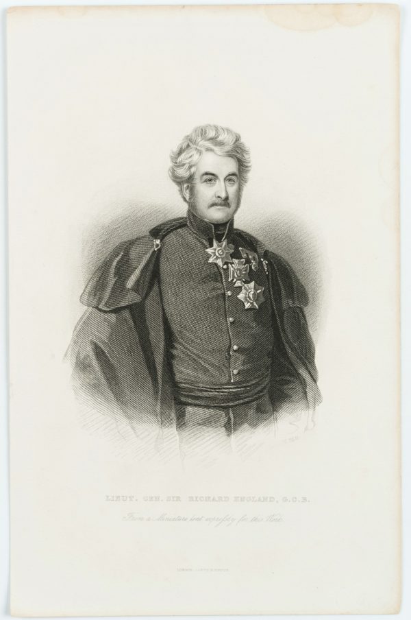 - Inscription: Unten signiert und betitelt: “Lieut. Gen. Sir Richard England, G. C. B. From a Miniature lent expressly for this Work”.