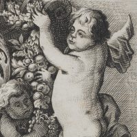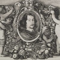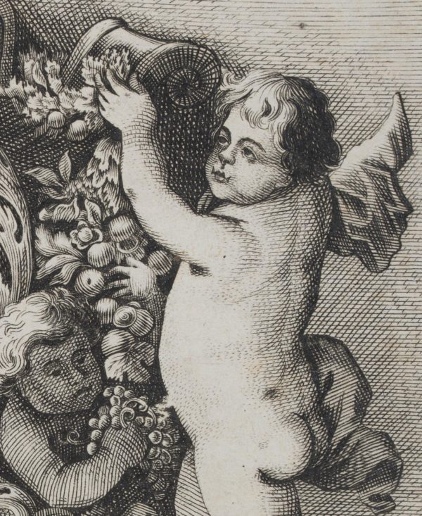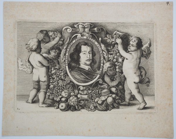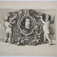 Wenzel Hollar (1607 Prag – 1677 London), Three-quarter portrait of the Flemish painter Pieter van Avont (1600-1652) surrounded by 5 putti, 1651, Copper engraving
