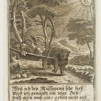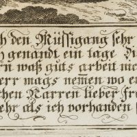 - Inscription: Inscribed in the printing plate: “Fauler Narr / Weil ich den Müssigang sehr lieb, werd ich genandt ein tage dieb […]”. Lower right numbered in the printing plate: “225”.