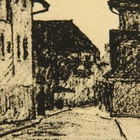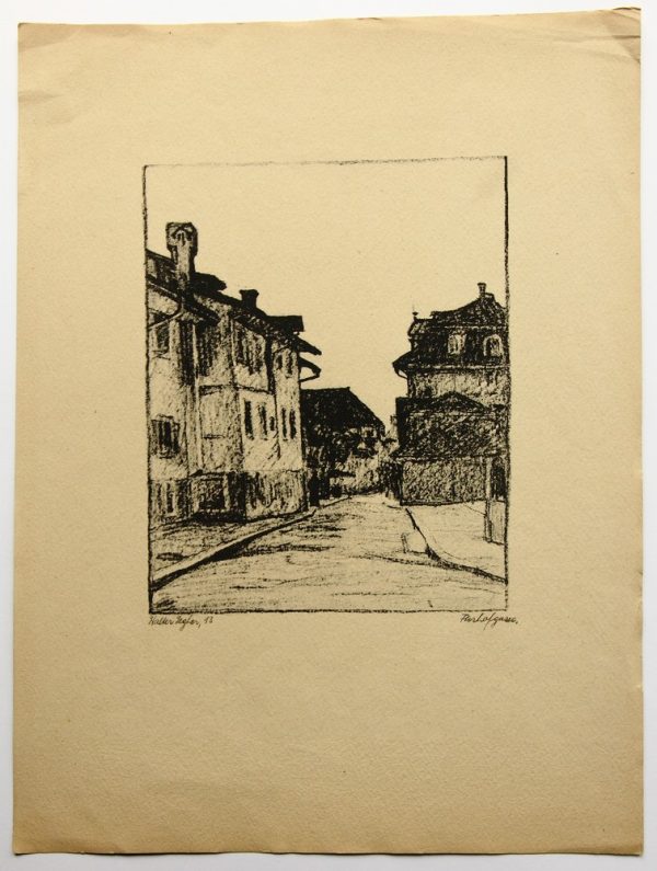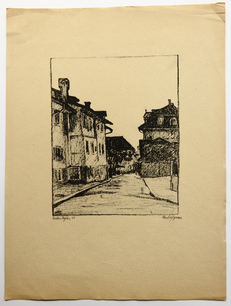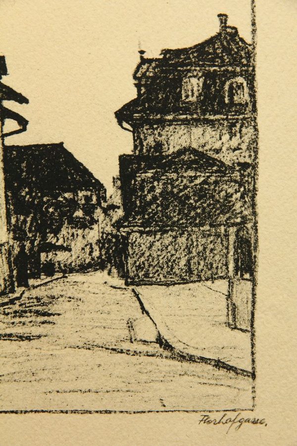 - Bezeichnung: Unterhalb der Darstellung ist das Blatt im Druck vom Künstler signiert, auf [19]13 datiert[?] und mit “Florhofgasse” bezeichnet.