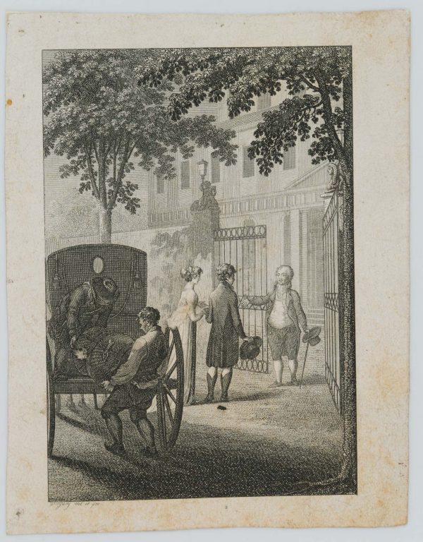 - Bezeichnung: Links unter der Darstellung signiert “W. Jury del et fec.” Aus den Händen des Berliner Künstlers Wilhelm Jury; seit 1779 Schüler an der Berliner Akademie und bald darauf Lehrling an der dortigen Prozellanmanufaktur; einer der ersten Modekünstler in Bücherkupfer, besonders zu Romanen. (Quelle: Thieme-Becker).