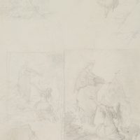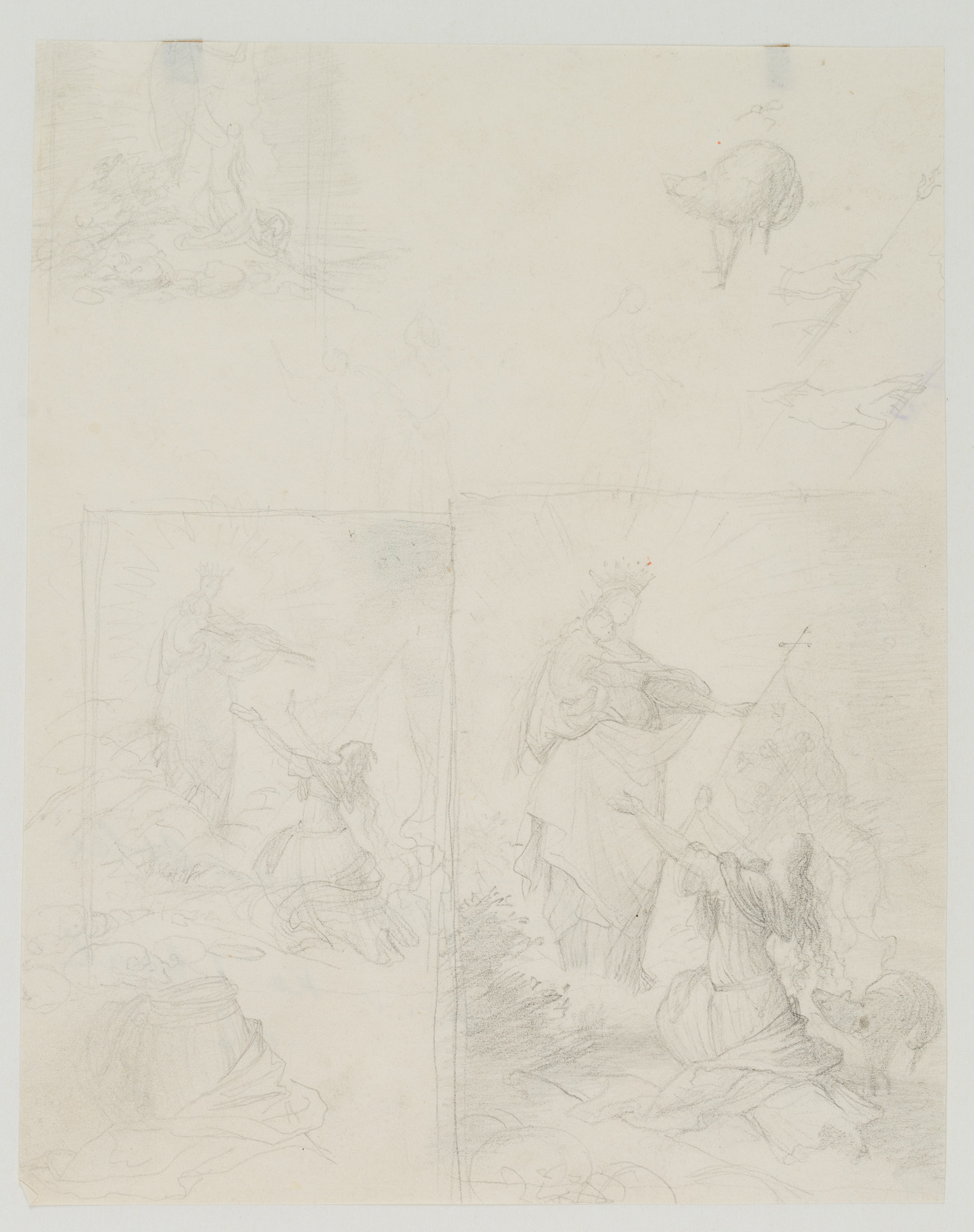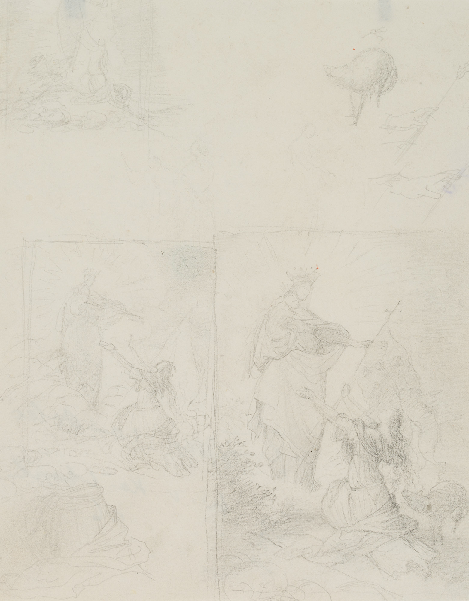 Wilhelm von Kaulbach (1805 Arolsen – 1874 München), KAULBACH, Studie zur Jungfrau v. Orleans mit Marienerscheinung., Bleist, 19. Jahrhundert, Bleistift