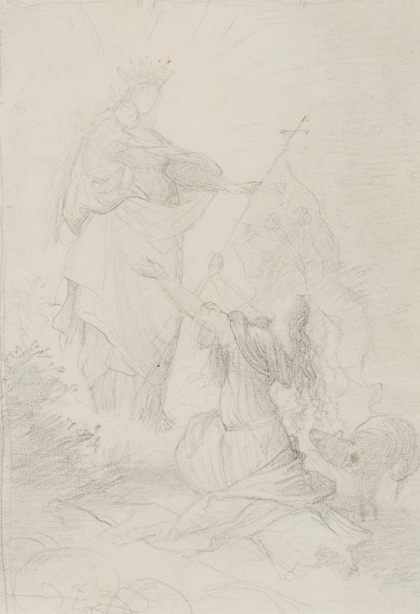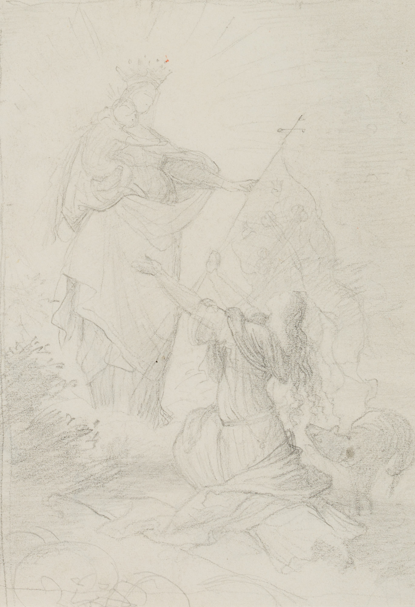 Wilhelm von Kaulbach (1805 Arolsen – 1874 Munich), KAULBACH, Study on the Virgin of Orleans with Marian apparition, Bleist, 19th century, Pencil