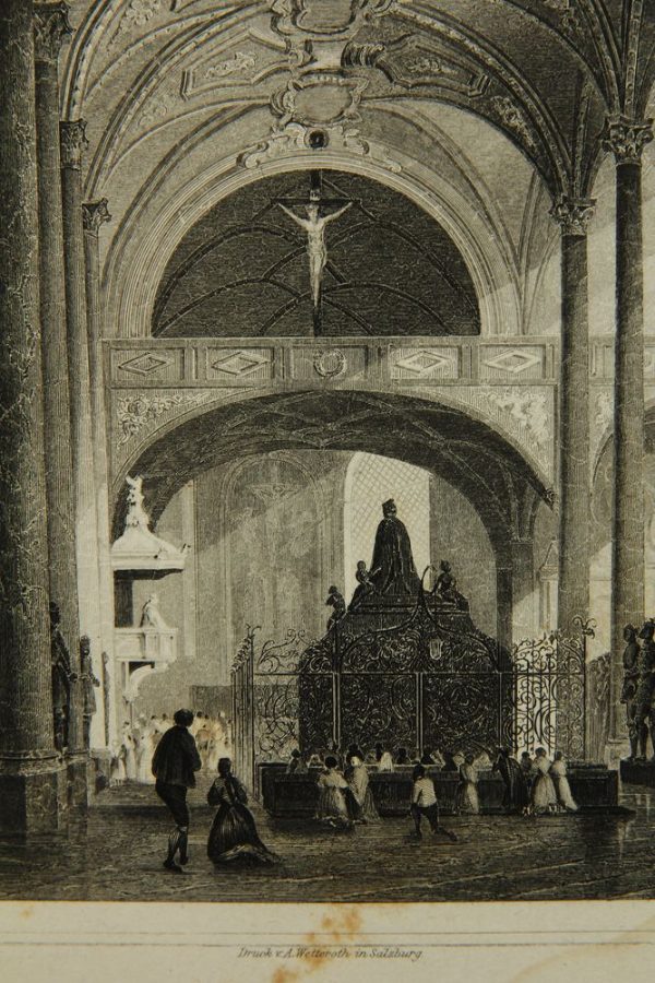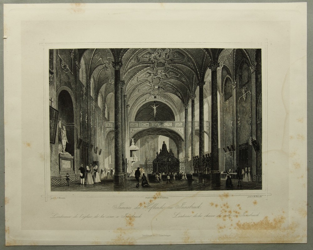 - Beschreibung: Nach einer Vorlage von Friedrich Würthle (1820 Konstanz – 1902 Salzburg). Hofkirche zu Innsbruck mit Grabmal Kaiser Maximilians I.