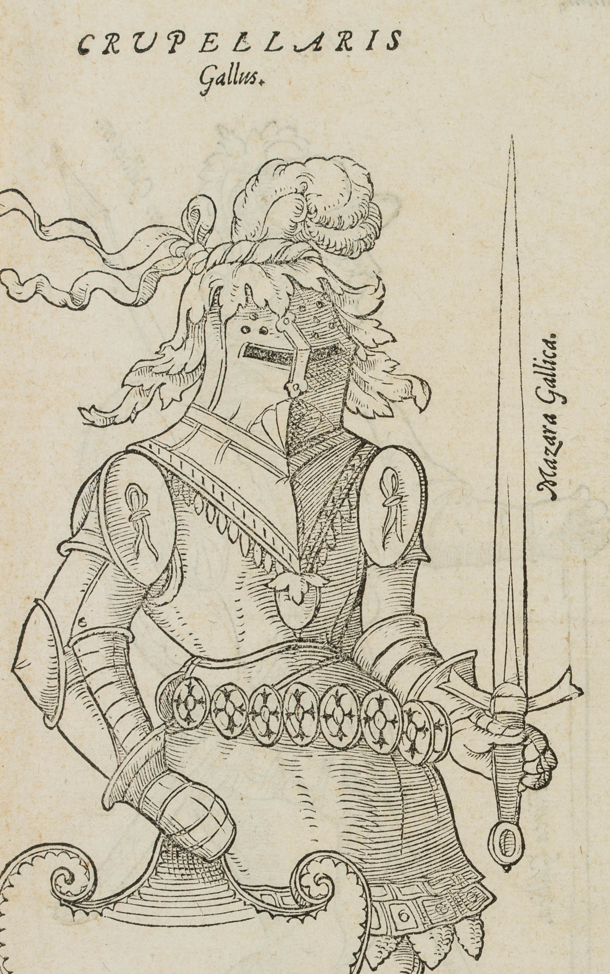 Wolfgang Lazius (1514 Wien – 1565 ebd.), “Crupellaris”, Geharnischter Fechter, Gladiator, , Holzschnitt