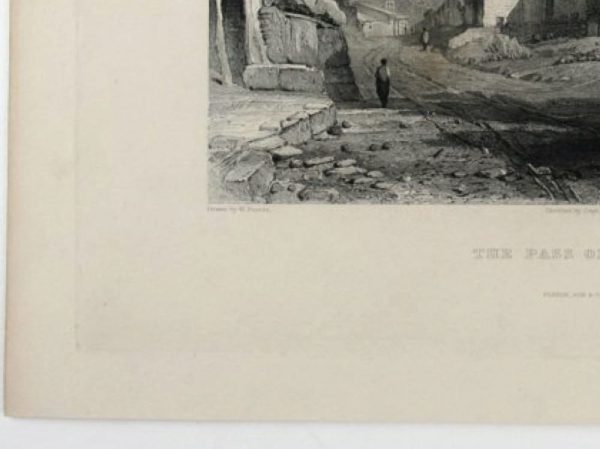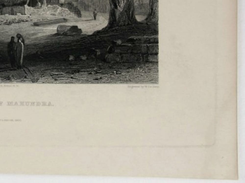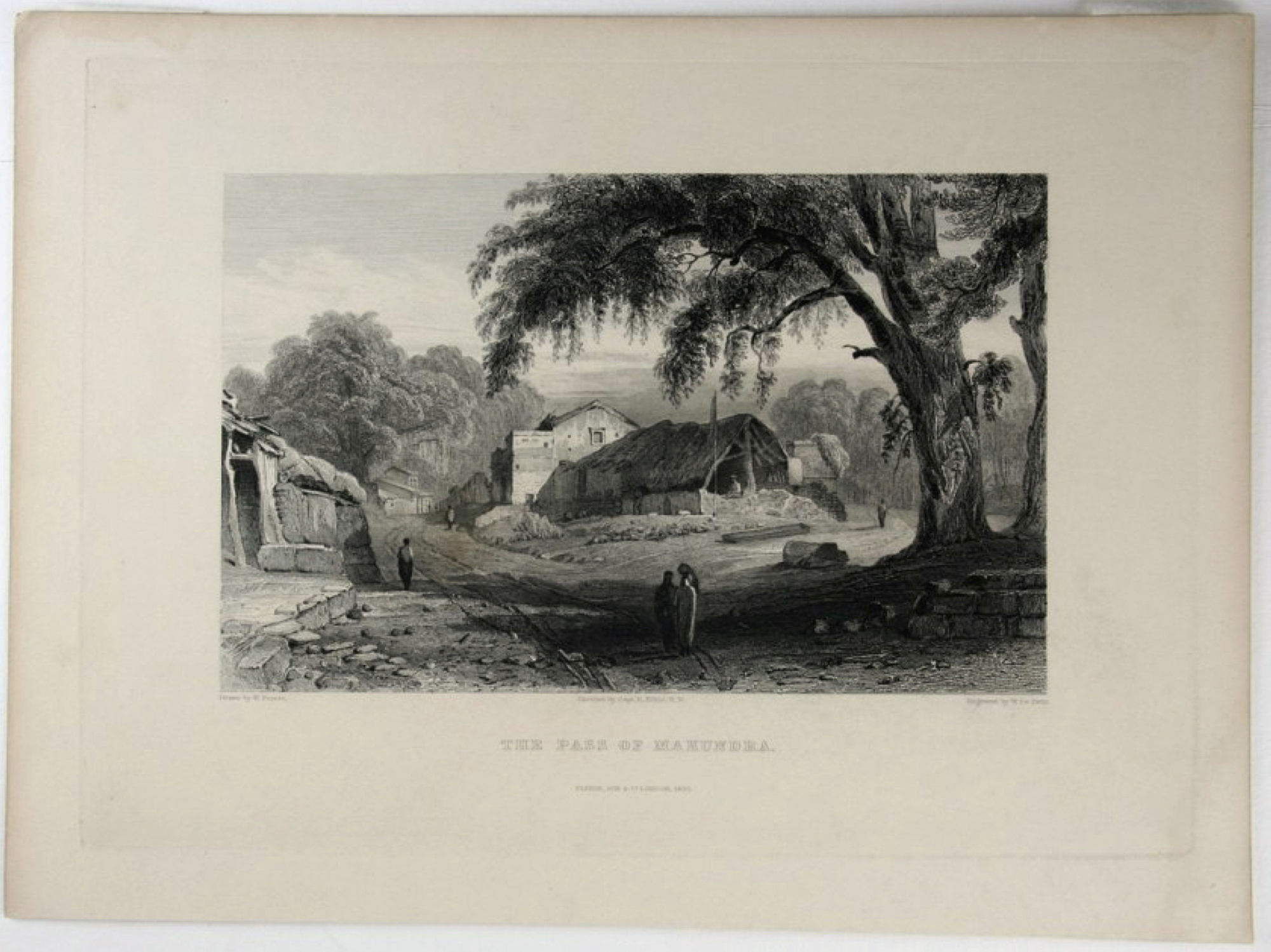 - Description: Steel engraving by William Le Petit after W. Purser, inscribed: “Drawn by W. Purser Sketches by Capt. R. Elliot, R. N. Engraved by W. Le Petit The Pass of Makundra Fisher, Son&C° London, 1833”. Very nice depiction of an Indian landscape with mighty trees and crumbling houses along the way. William Le Petit was a British copper and steel engraver. He was active from about 1829 – 1857.