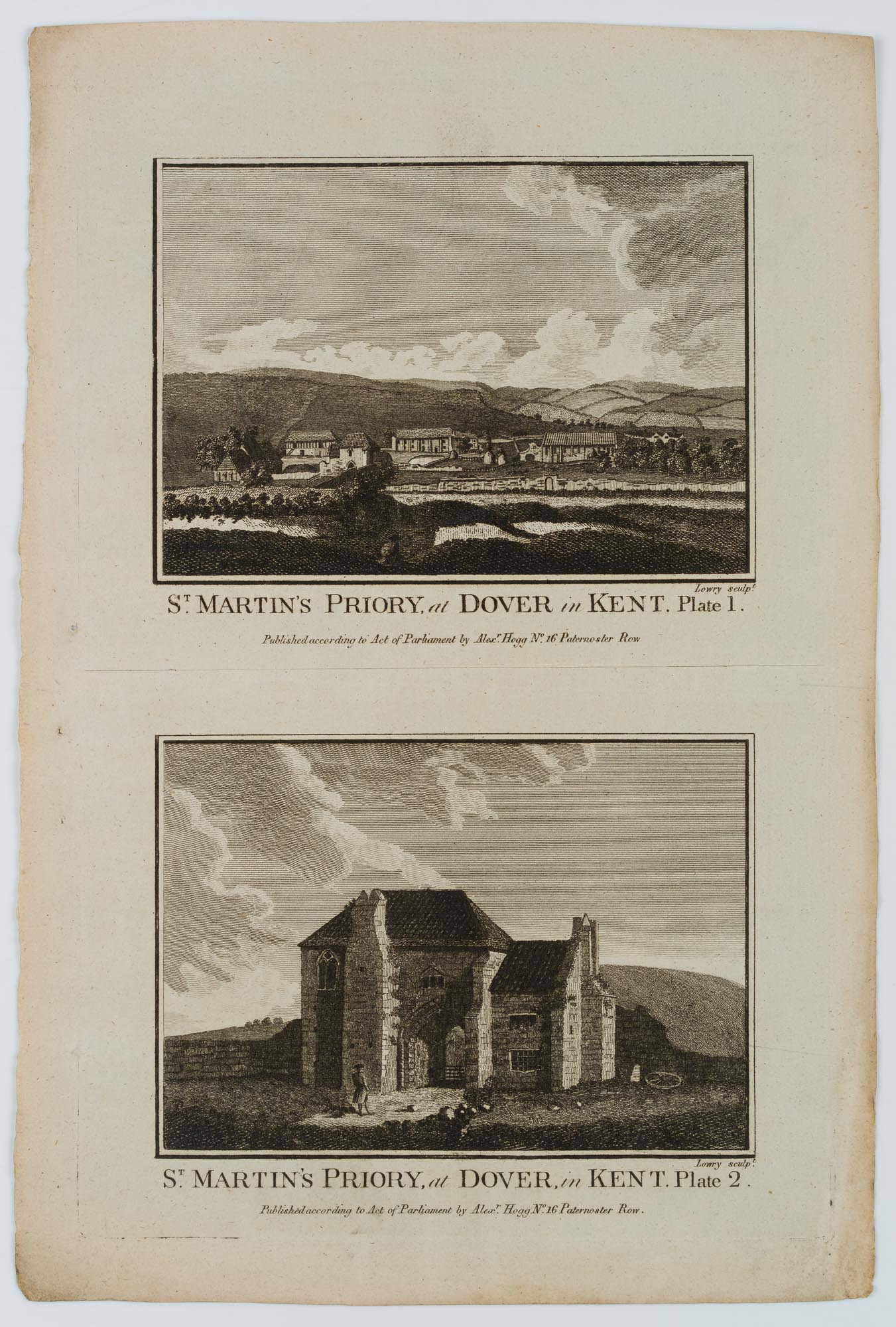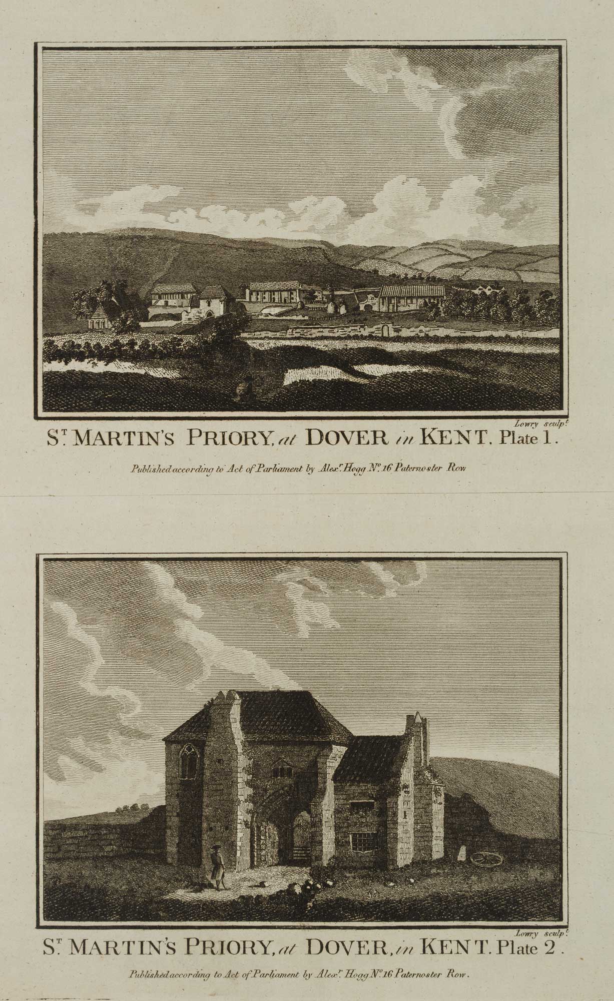 Wilson Lowry (1762 – 1824 ), Two landscape and architectural depictions: “St Martin’s Priory, at Dover in Kent Plate 1”, “St Martin’s Priory, at Dover in Kent Plate 2”, 18th century, Etching