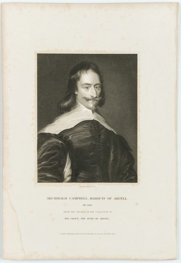 - Bezeichnung: Unten signiert und betitelt: “Archibald Campbell, Marquis of Argyll. OB. 1661. From the Original. In the collection of His Grace, The Duke of Argyll.”