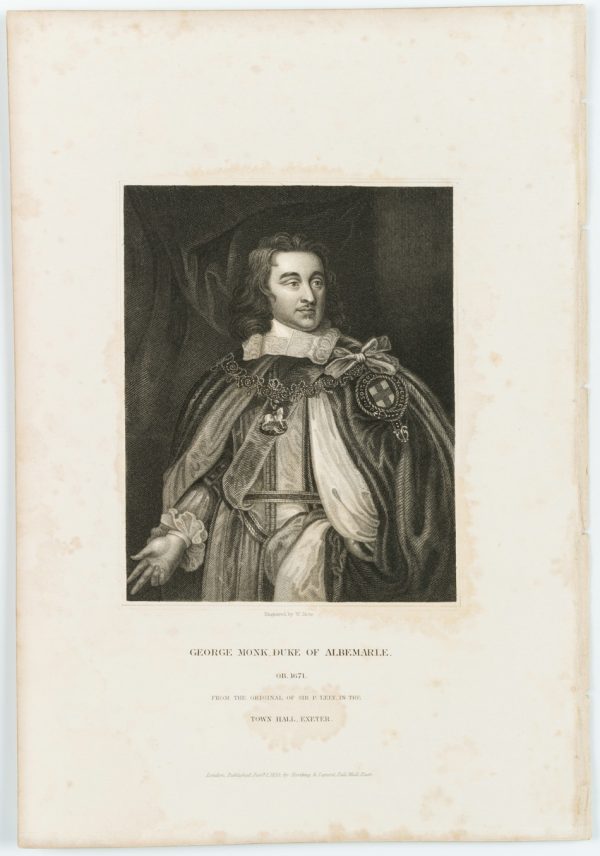 - Bezeichnung: Unten signiert und betitelt: “George Monk, Duke of Albemarle. OB. 1671. From the Original of Sir P. Lely. In the Town Hall, Exeter.”