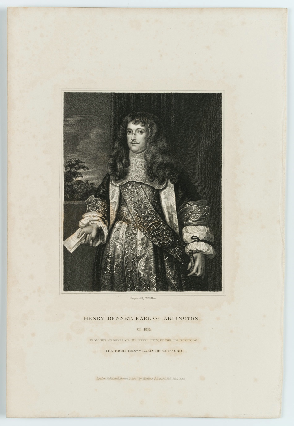 - Bezeichnung: Unten signiert und betitelt: “Henry Bennet, Earl of Arlington. OB. 1695. From the original of Sir Peter Lely. in the collection of The Right Honble. Lord de Clifford.”
