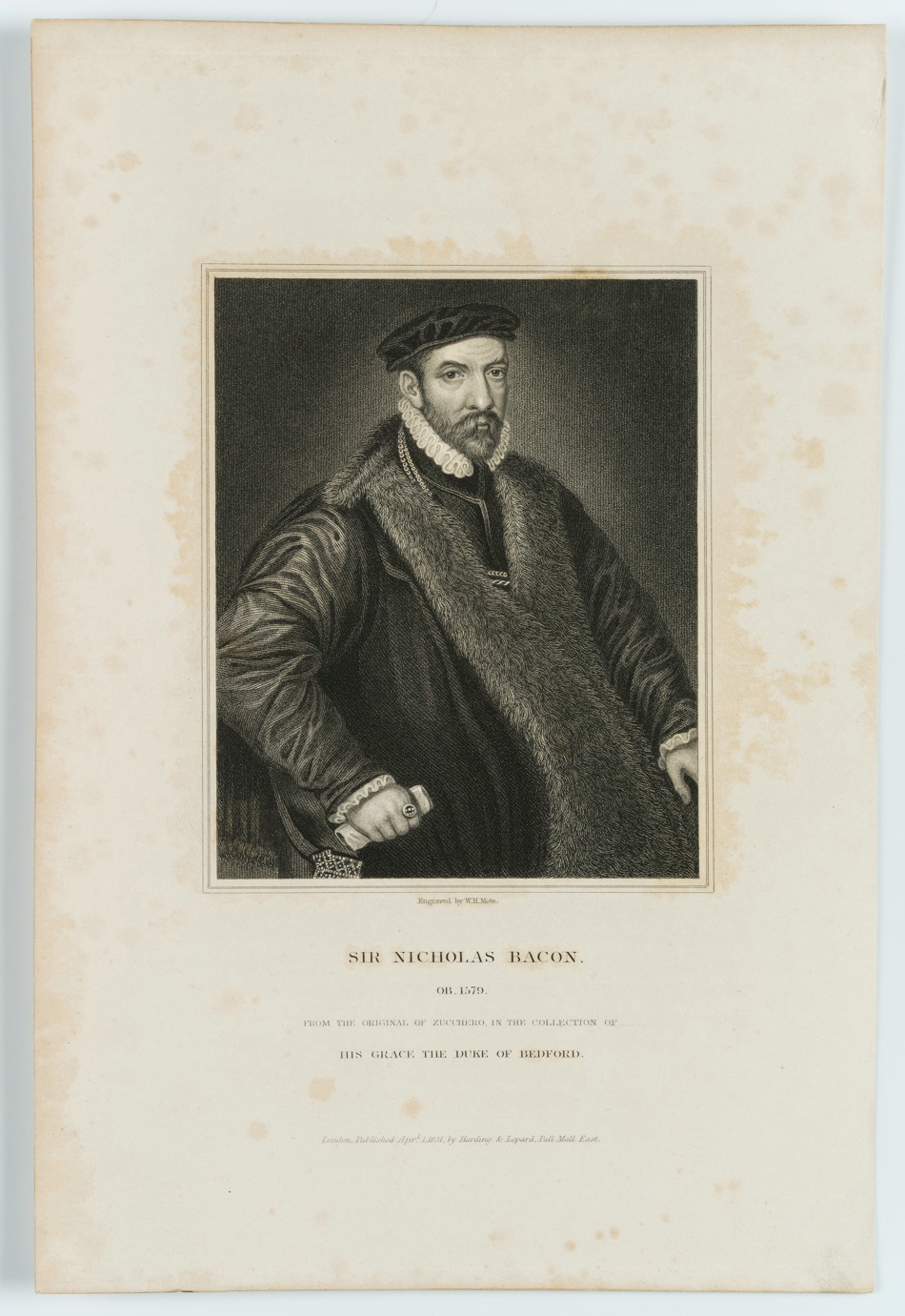 - Bezeichnung: Unten signiert und betitelt: “Sir Nicholas Bacon. OB. 1579. From the original of Zucchero. in the collection of His Grace The Duke of Bedford.”